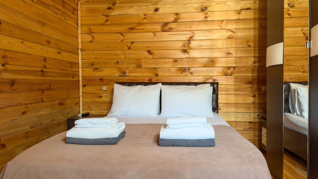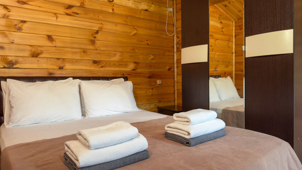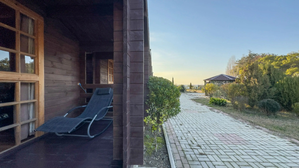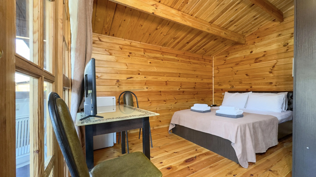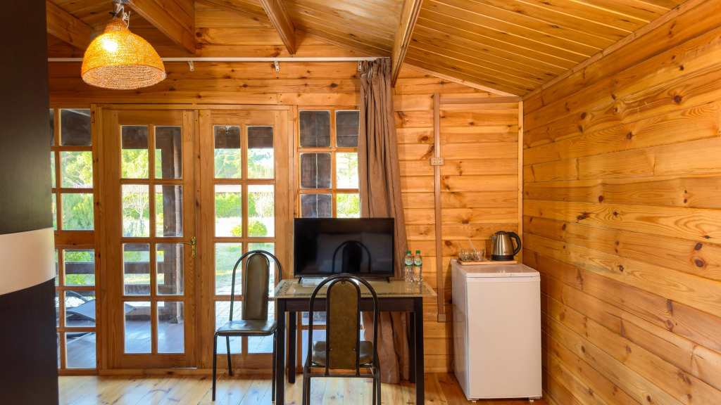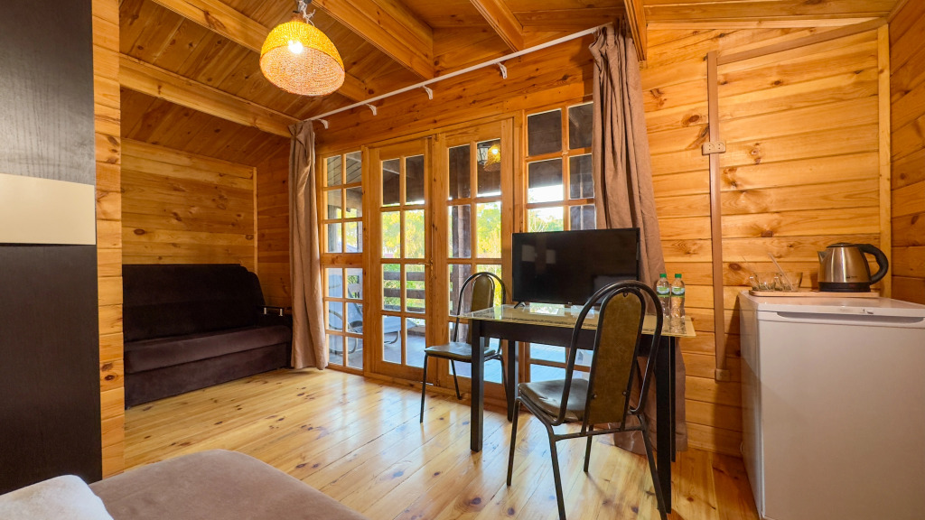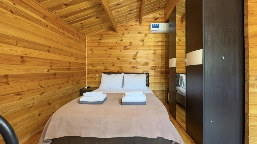 The hotel is a complex of 17 eco-houses made of natural wood. On the territory: cafe with barbecue area, furnished covered gazebos, 4 frame pools, equipped beach with sun loungers and umbrellas in season, laundry, ironing facilities, parking. Guests also have access to board games and sports. Wi-Fi is available throughout the territory. For an additional fee, guests can use the transfer, excursion programs, laundry services.