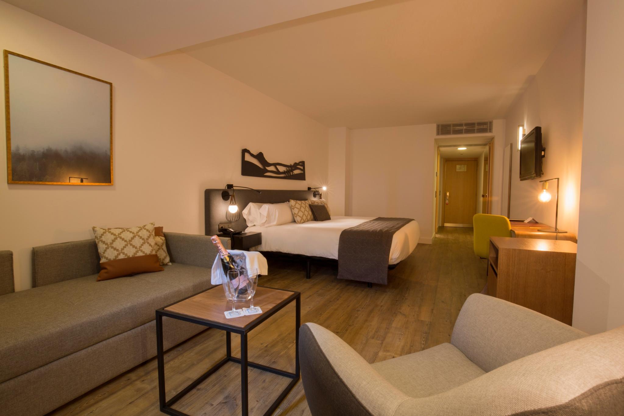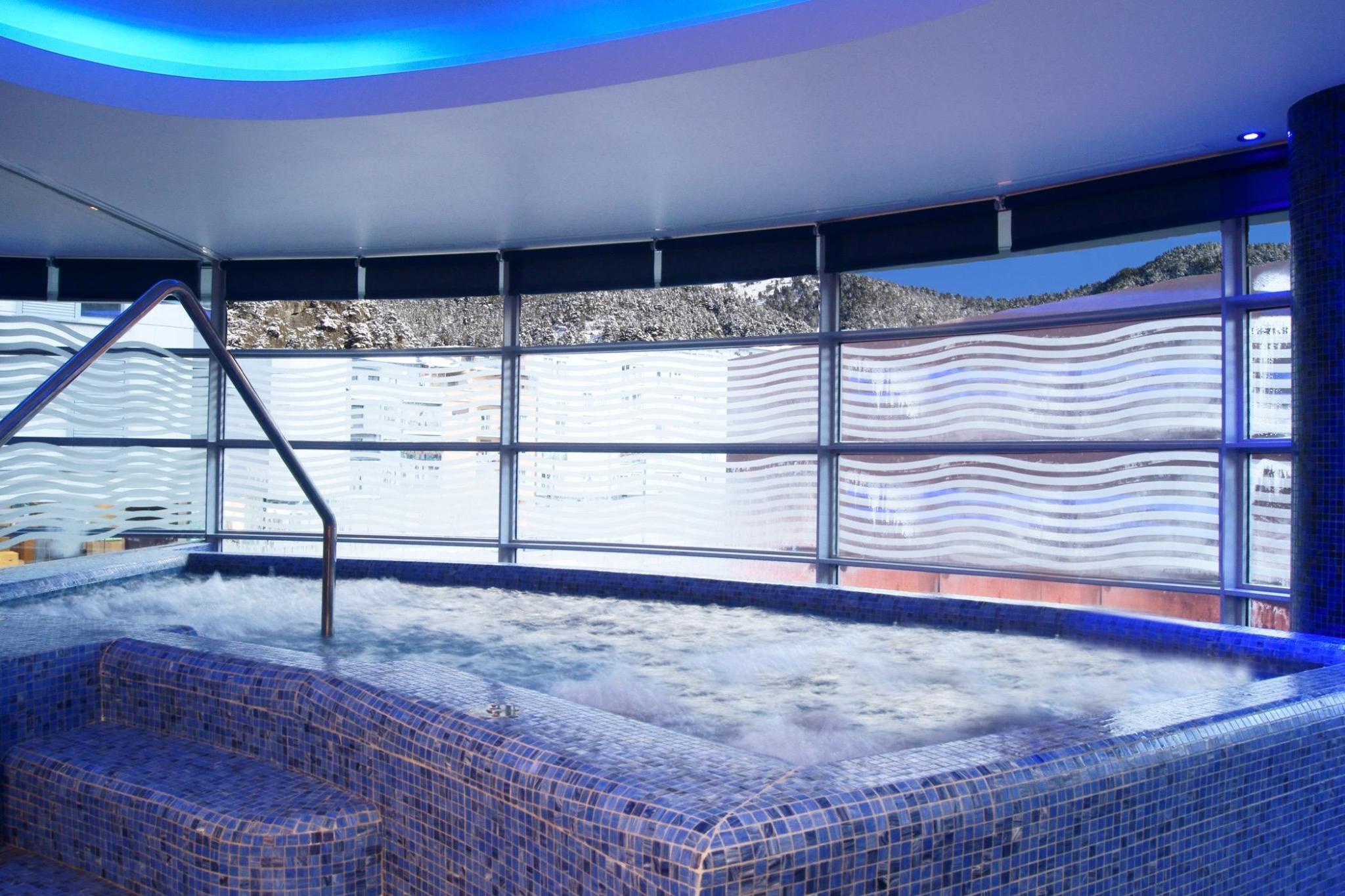 This city hotel is located in central Andorra, on the popular Meritxell Street, abounding in tax-free shops. The establishment is only 600 metres from Caldea Thermal Spa. Andorra Bus Station is within a 10-minute walk. Pal-Arinsal Ski Resort is around 7 km from the hotel. All rooms are spacious, completely soundproofed and comfortably furnished in natural tones. They have central heating and are fitted with amenities such as satellite TV and a free wireless connection. The hotel's small wellness centre includes a Turkish bath, a hot tub, experience showers and a gym. The on-site restaurant serves international cuisine.