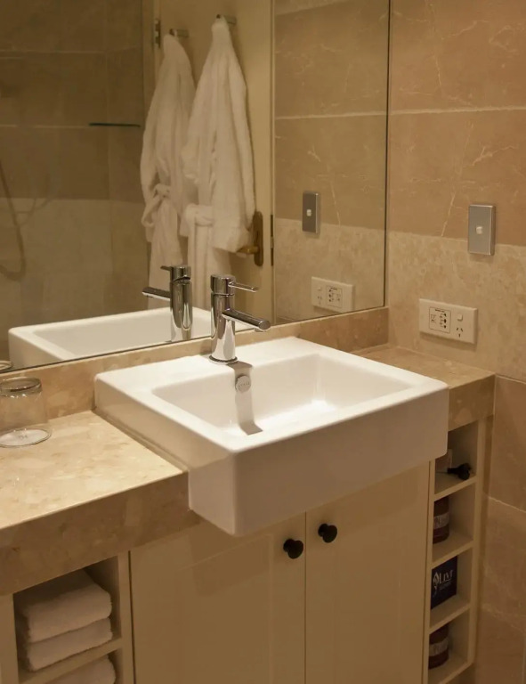 Here’s what you’ll find in the room to have a rest after a long day: an alarm clock, a shower, a TV, a mini-bar and a bathrobe. Please note that the listed services may not be available in all the rooms.