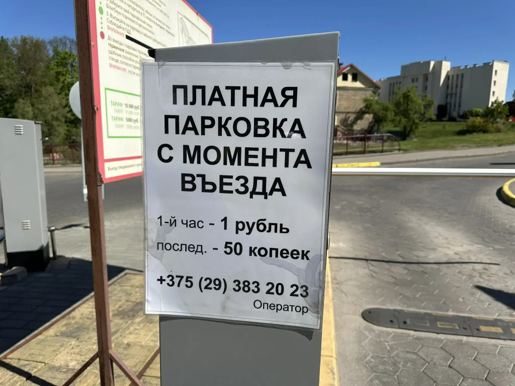 Parking under the entrance is paid: first hour — BYN 1.00, then — BYN 0.5. Payment by card or cash when leaving the parking lot. The nearest free parking: Antonia Tyzengauz ploshchad 2.