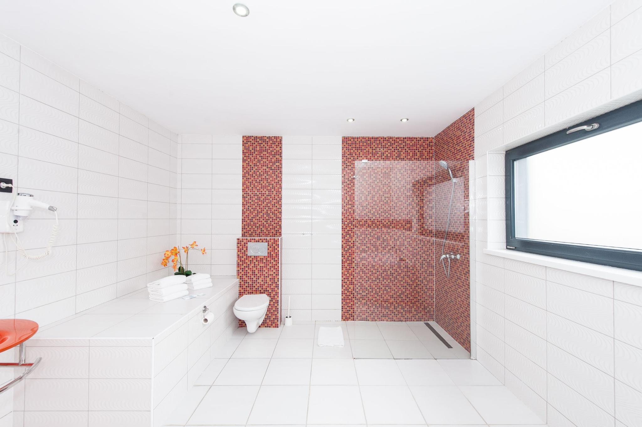 Each room comes with a flat-screen TV and a telephone. The bathroom is equipped with a shower or a bathtub, a hairdryer and free toiletries. The suites feature a private terrace as well.
