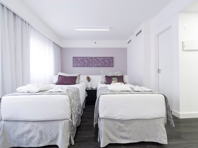 This 4 star hotel is located in the city centre of Sao Paulo. It is a short drive away from the Obelisco and the nearest station is Brigadeiro Station. The Hotel has an outdoor swimming pool and a fitness centre/gym. All 200 rooms are equipped with minibar, hairdryer, safe, ironing set and air conditioning.