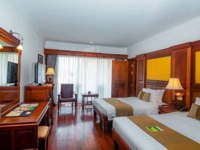 This 4 star hotel is located within the city of Siem Reap. The Hotel has a coffee shop, an outdoor swimming pool and a fitness centre/gym. All 208 rooms are equipped with minibar, hairdryer, safe and air conditioning.