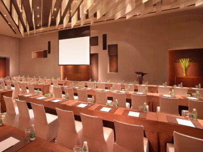 This 5 star hotel is located in the city centre of Guangzhou and was established in 2008. It is a short drive away from the Guangzhou Opera House and the nearest station is Pearl River New City Station. The Hotel has a coffee shop, an indoor swimming pool and a fitness centre/gym. All 375 rooms are equipped with minibar, hairdryer, safe, trouser press, ironing set and air conditioning.