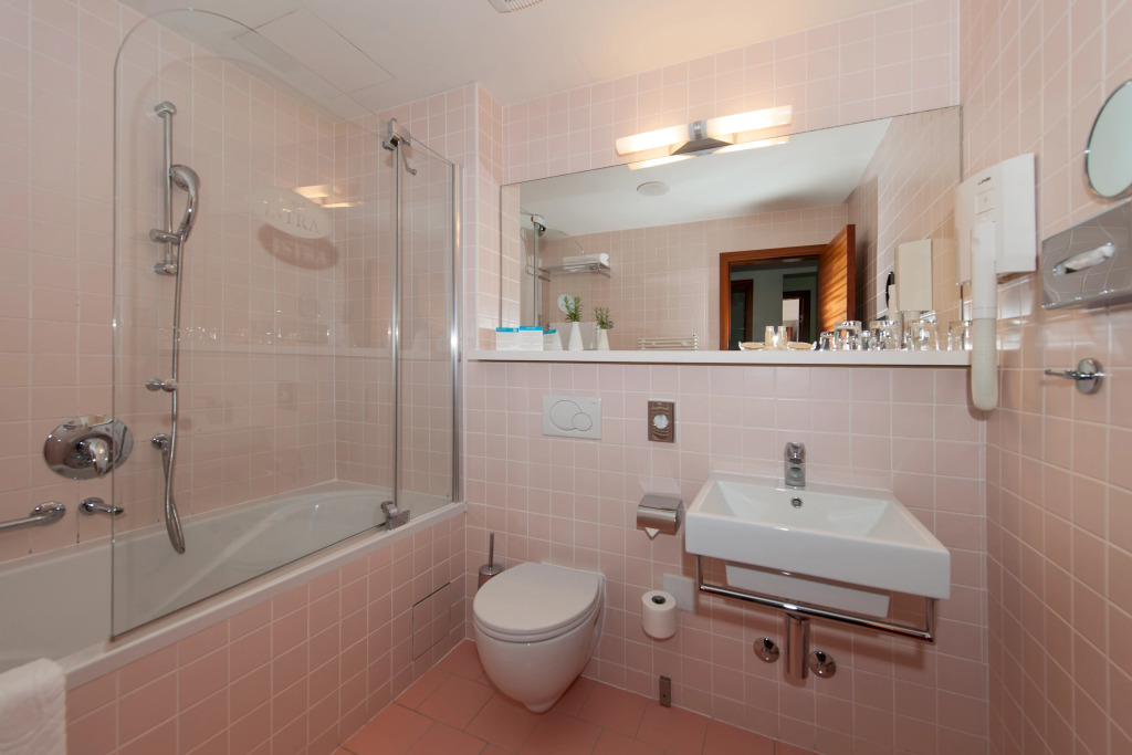 In the room, there is a TV and a mini-bar. The room equipment depends on its category.