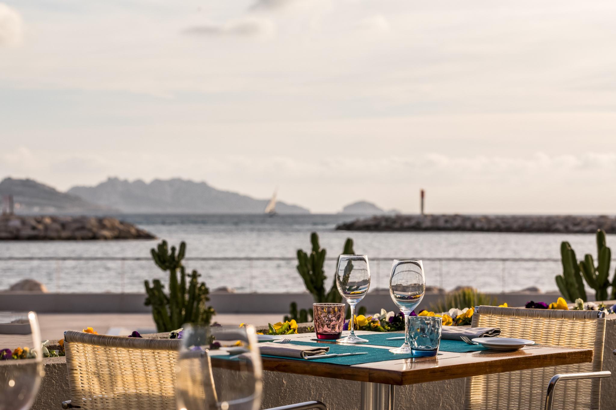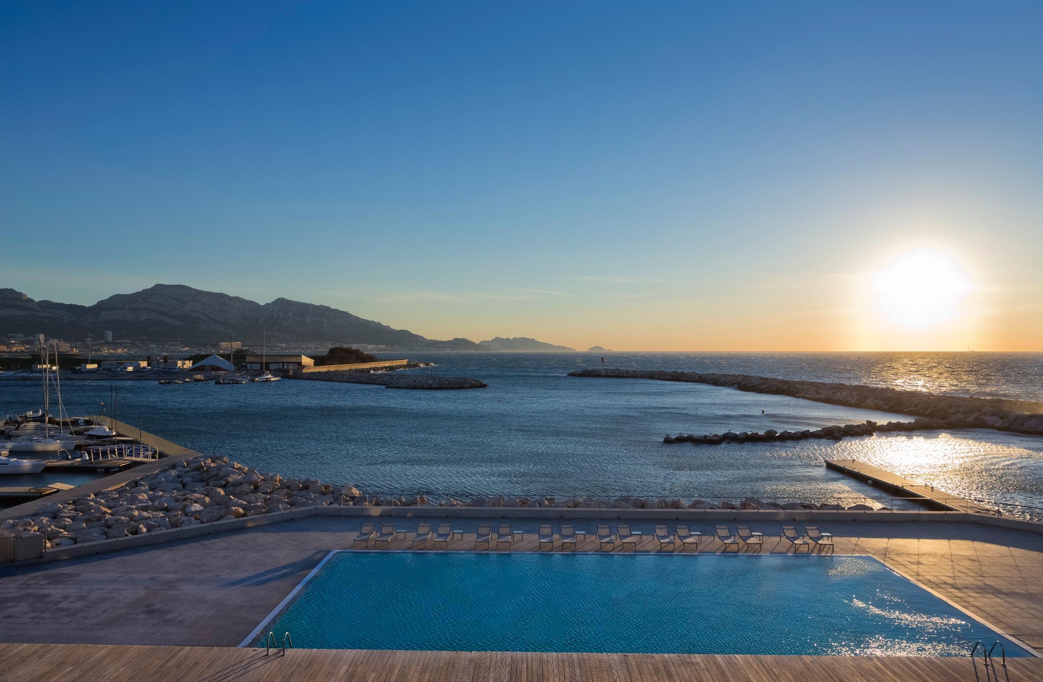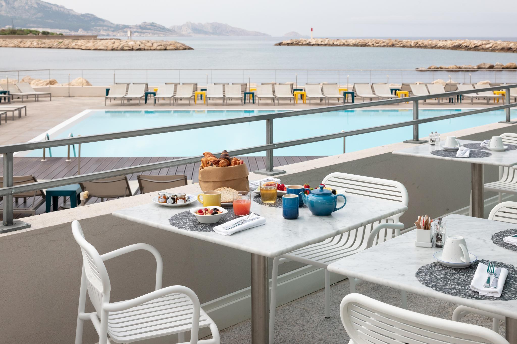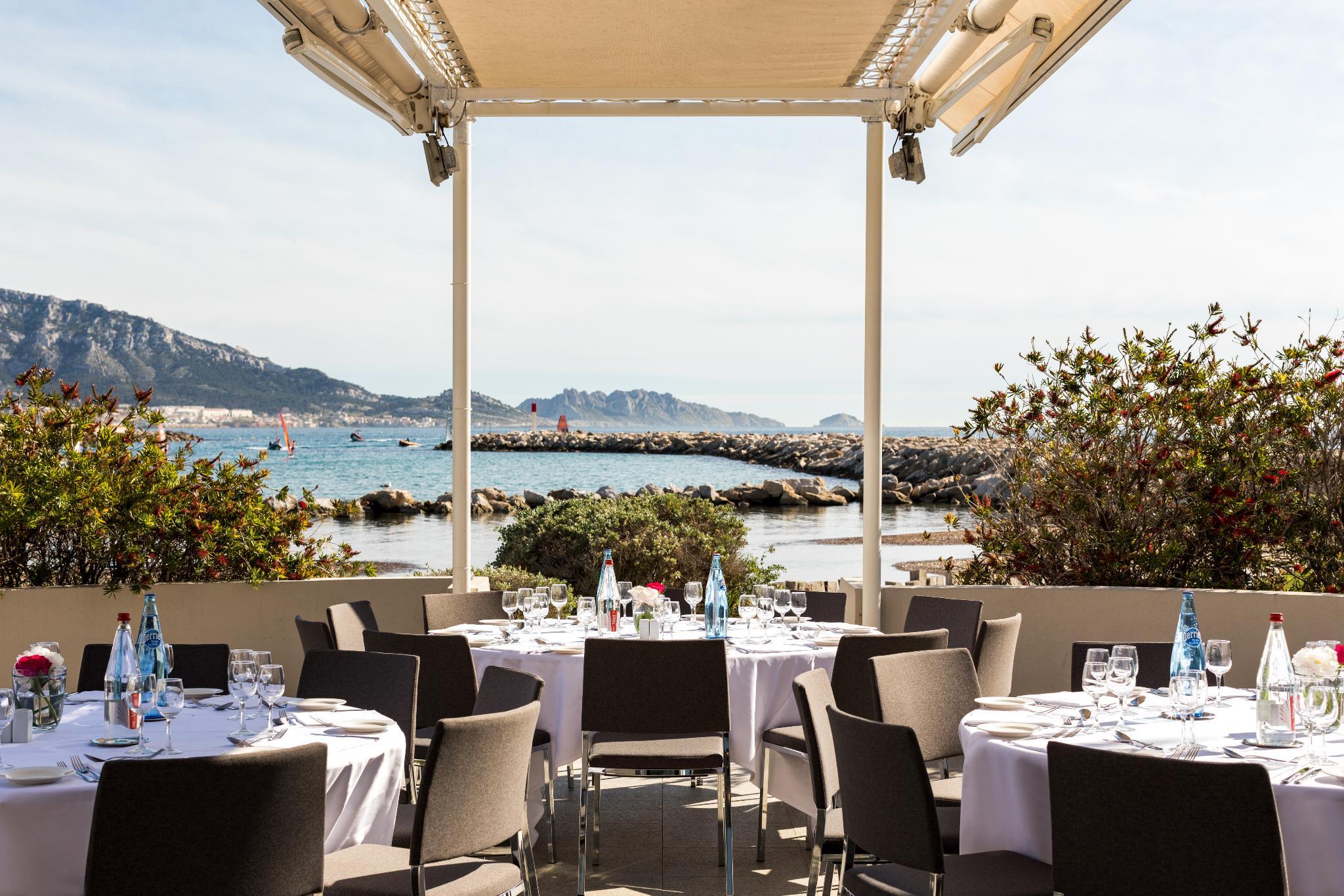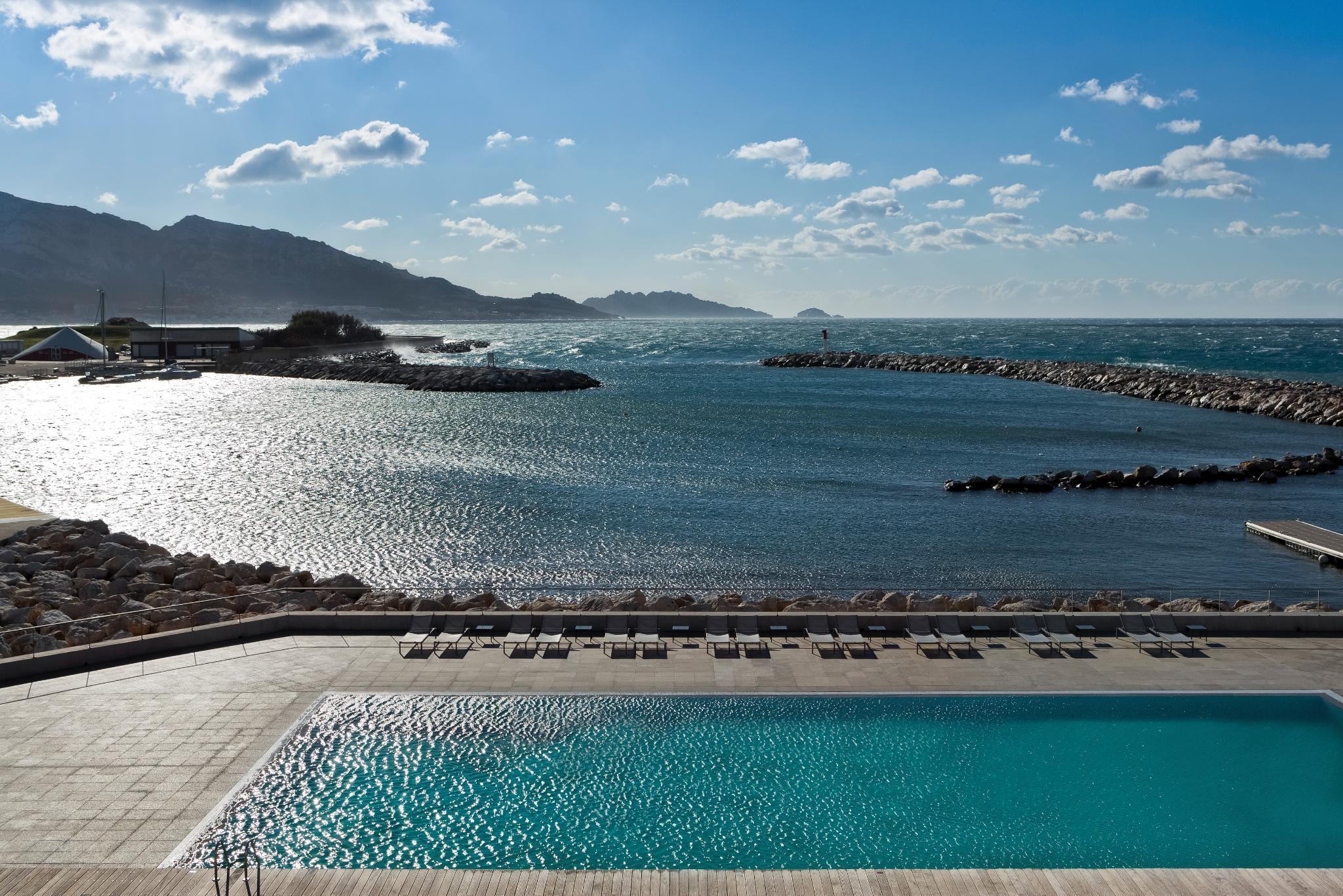 The nhow Marseille, formerly known as NH Marseille Palm Beach, is situated in one of the Mediterranean's most beautiful bays and offers exceptional sea views. Cleverly built into the rocks, the hotel is both a wonderful setting for a holiday and one of the largest business meeting and events venues in Marseille. Staying here puts you within minutes of the beach and you'll also be close to the Palais des Congres de Marseille conference center. The hotel has 150 fresh, contemporary rooms. Most rooms face the sea and have their own balcony or terrace. Rooms for guests with limited mobility and family rooms are also available. Guests start the day with a generous buffet breakfast. For lunch and dinner, the hotel's restaurant serves delicious Mediterranean cuisine. Snacks are also available in the hotel bar. For relaxation, you can have a relaxing swim in the seafront pool, open from May to October, or work out on the exercise machines in the gym. Guests can also enjoy treatments and massages in the spa. Meeting and conference facilities at the hotel include 16 fully equipped meeting rooms plus a large auditorium with capacity for 500.