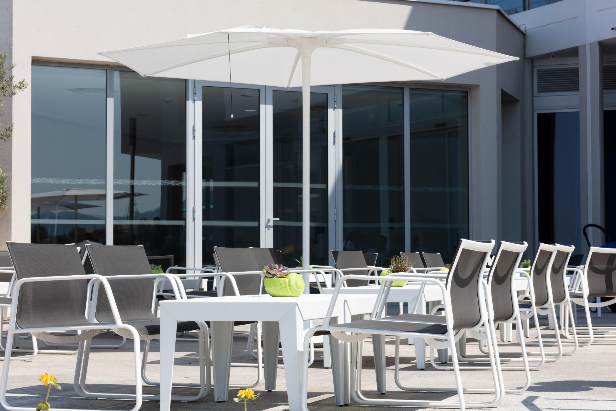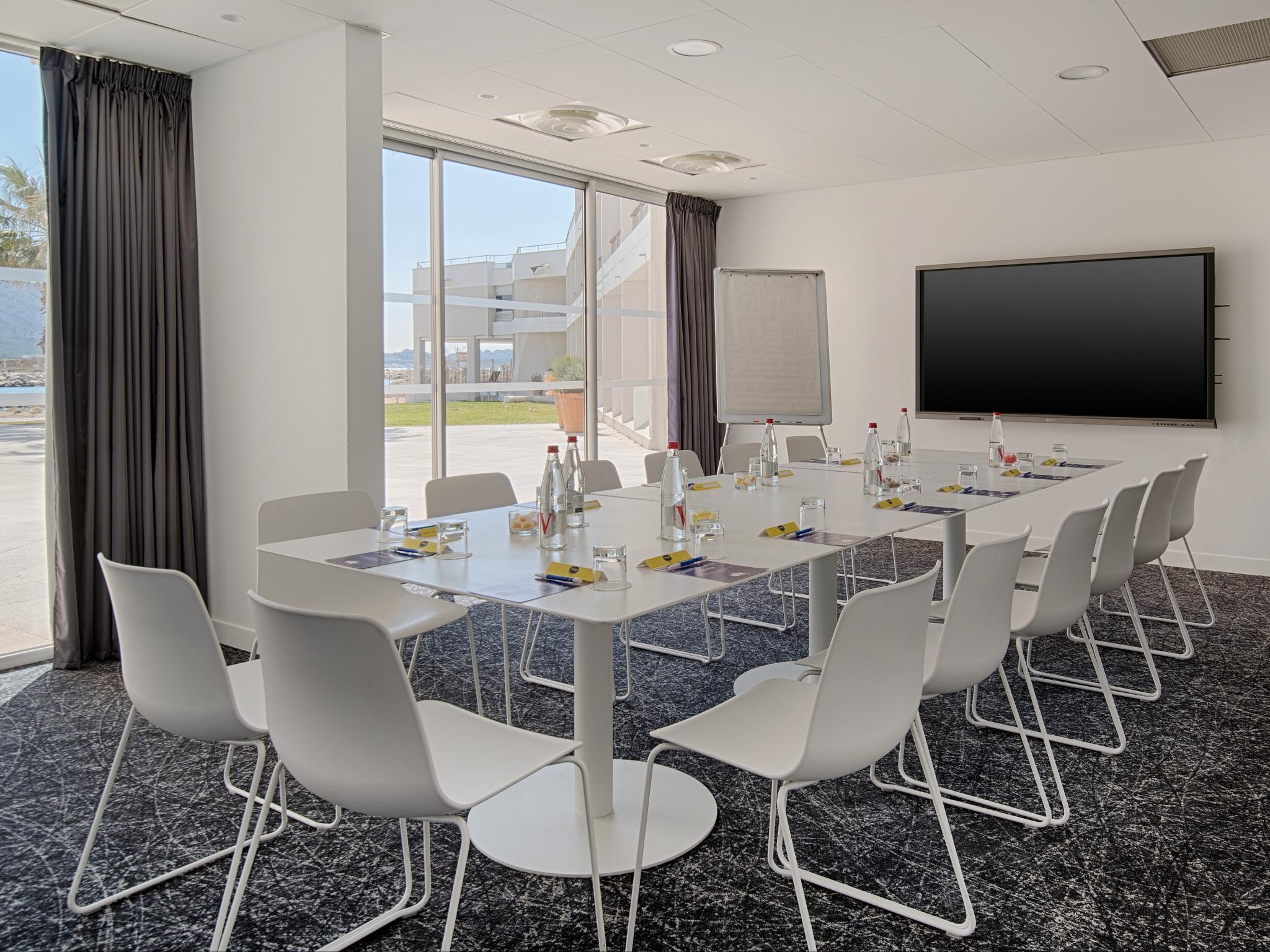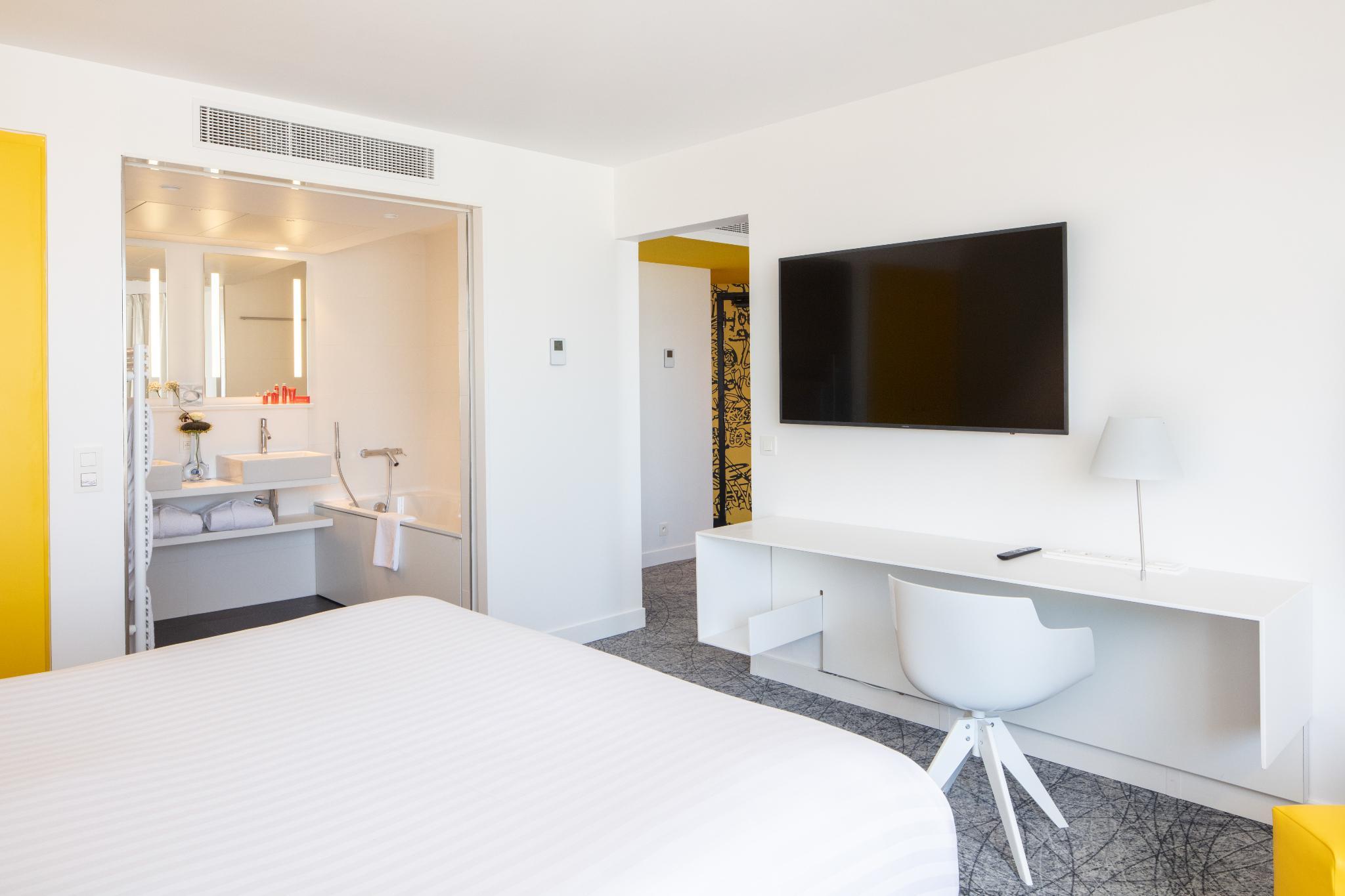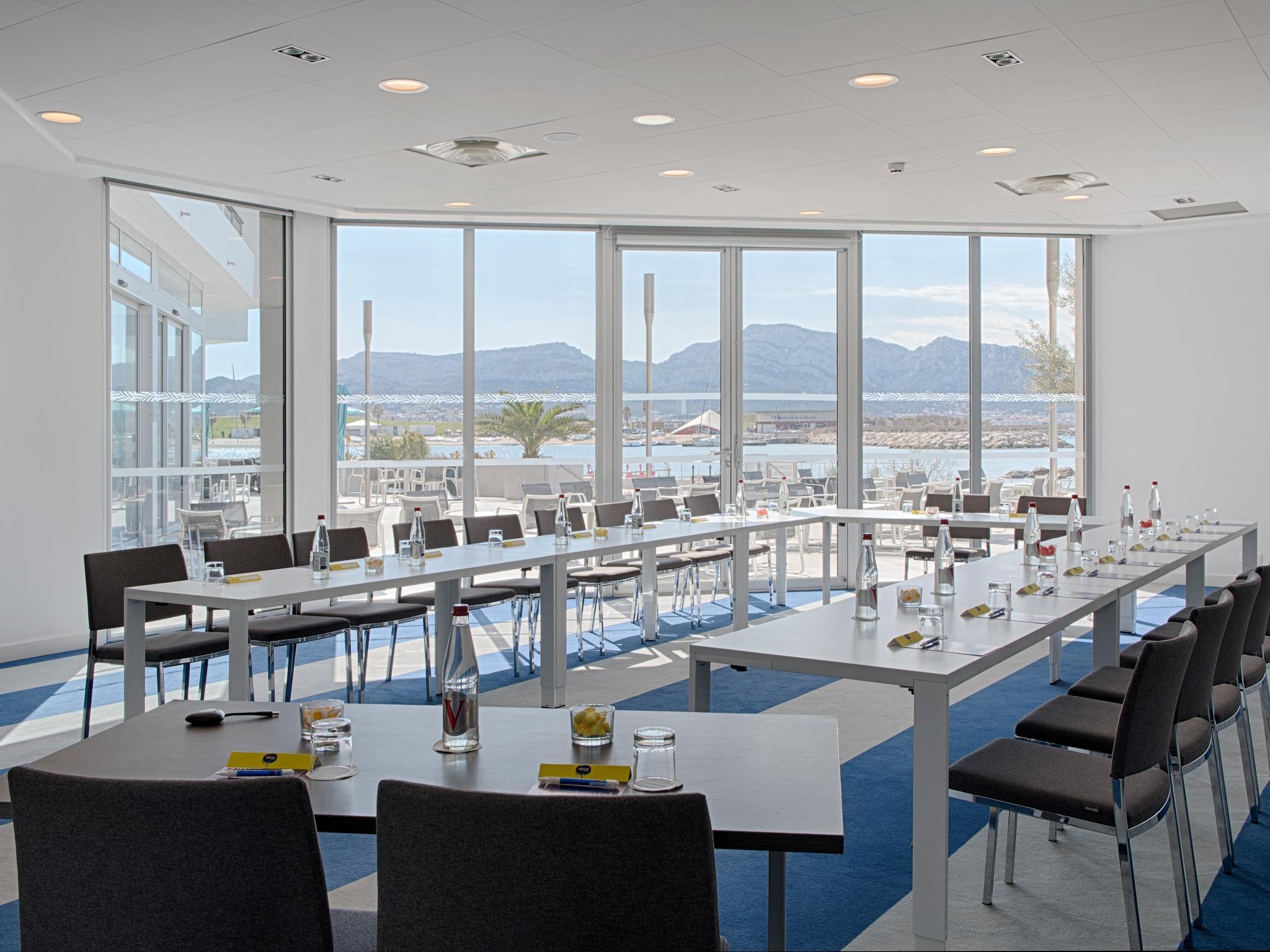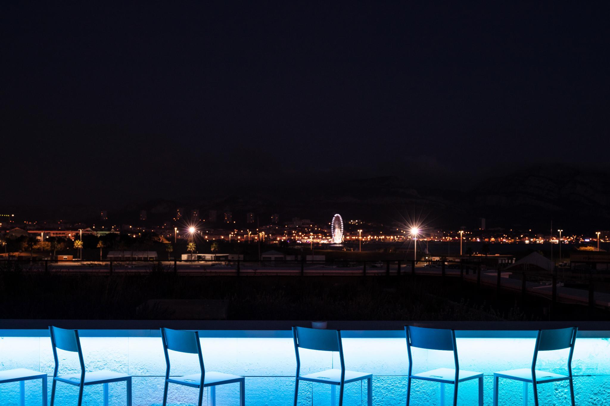 The nhow Marseille, formerly known as NH Marseille Palm Beach, is situated in one of the Mediterranean's most beautiful bays and offers exceptional sea views. Cleverly built into the rocks, the hotel is both a wonderful setting for a holiday and one of the largest business meeting and events venues in Marseille. Staying here puts you within minutes of the beach and you'll also be close to the Palais des Congres de Marseille conference center. The hotel has 150 fresh, contemporary rooms. Most rooms face the sea and have their own balcony or terrace. Rooms for guests with limited mobility and family rooms are also available. Guests start the day with a generous buffet breakfast. For lunch and dinner, the hotel's restaurant serves delicious Mediterranean cuisine. Snacks are also available in the hotel bar. For relaxation, you can have a relaxing swim in the seafront pool, open from May to October, or work out on the exercise machines in the gym. Guests can also enjoy treatments and massages in the spa. Meeting and conference facilities at the hotel include 16 fully equipped meeting rooms plus a large auditorium with capacity for 500.