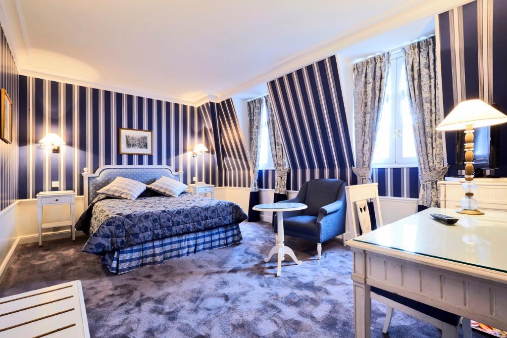 This charming hotel enjoys a spectacularly central location in Paris' 1st arrondissement overlooking the gardens of Palais Royal. The hotel is set in a former town house which is notable for once housing Madame de Pompadour, and still features an imposing Louis XV-style facade. Guests will find a variety of cafes, bars, restaurants and shops in the immediate vicinity of the hotel, and will easily be able to reach many of Paris' celebrated historical and cultural attractions on foot, including the Louvre, Musee d'Orsay, Notre Dame Cathedral, and Champs-Elysees. Rooms are spacious and comfortable with air-conditioning, en suite marble bathroom, and soundproofing to ensure a good night's rest. Guests can enjoy a drink in the bar or relax by the fireplace in the large lounge. The hotel also offers helpful services including an airport shuttle and room service, making it ideal for a sightseeing holiday in the heart of Paris.