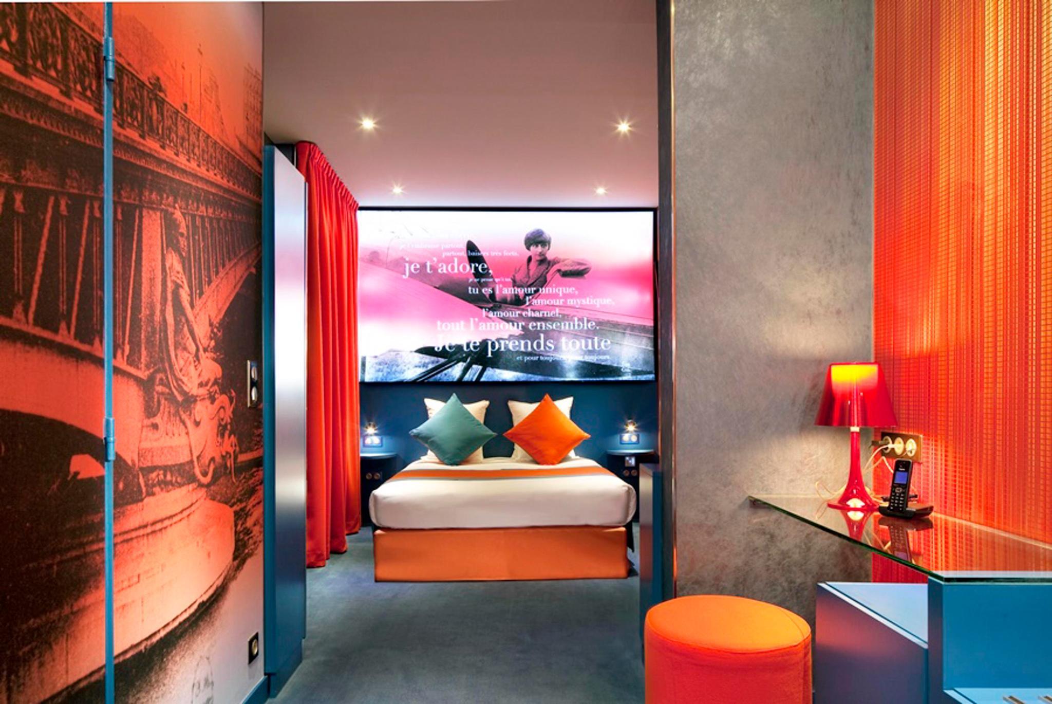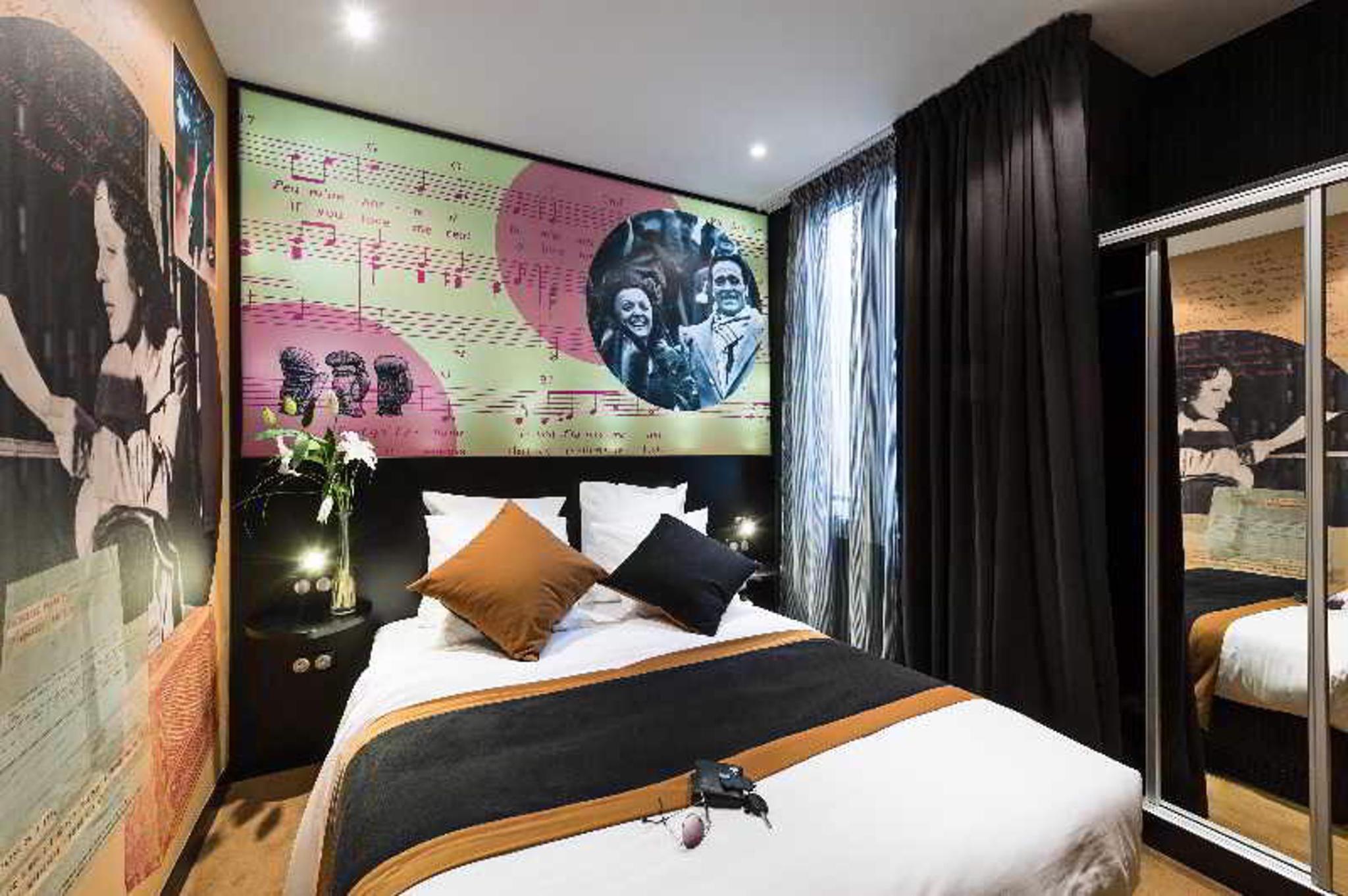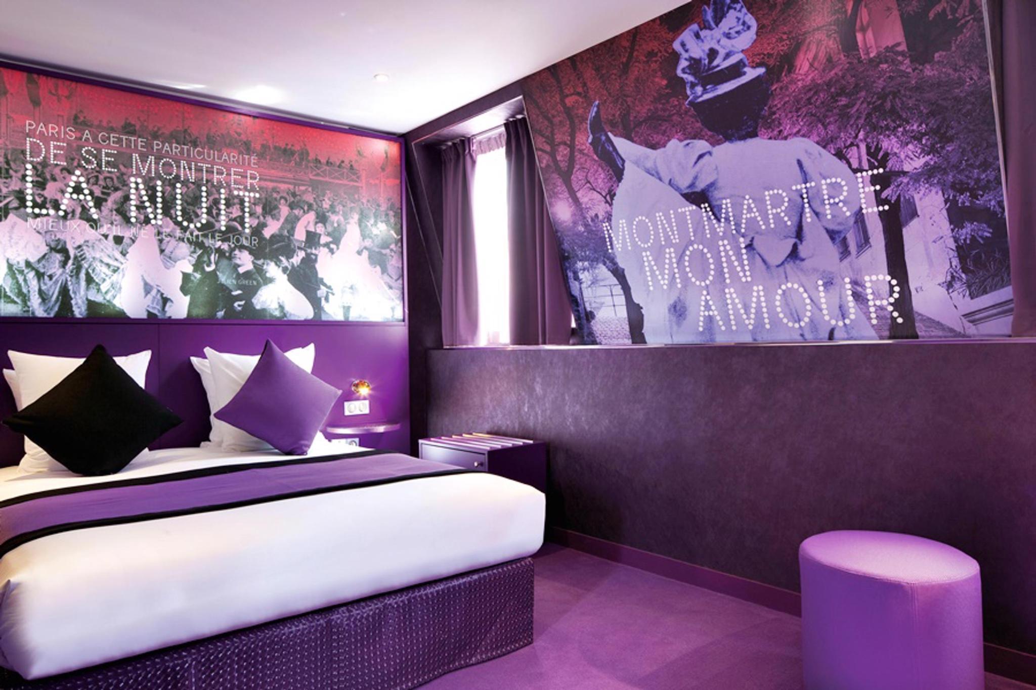 The hotel is perfectly situated just 550 metres from Anvers Metro station in Butte de Montmartre. The Sacre Coeur Basilica is just 180 metres away and both the Palais Garnier Opera House and the Louvre are less than 5 km from the property. The Moulin Rouge and the Place du Tertre are within a convenient walk of the residence. This air-conditioned city hotel offers 24 themed rooms based on famous couples and romance. In the library guests can enjoy some peace and quiet with a good book, while an on-site restaurant which serves a selection of dishes is also available. The breakfast is love-themed and can be delivered to rooms on request.