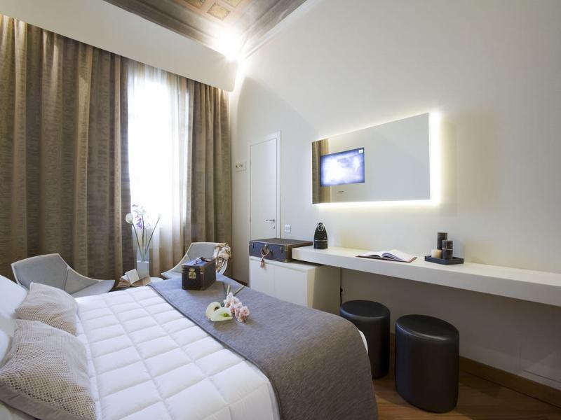The hotel is located a few hundred metres from the Santa Maria Novella central station, the historical centre and the main exhibition and congress centre. Peretola Airport is approximately 5 km away and Galileo Galilei Airport is roughly 85 km from the hotel. This luxurious, completely renovated hotel is housed within an aristocratic building from the 19th century, where the elegance and the style of that age combine with the comfort of the lattest technological facilities. The use of ecological materials has permitted keeping the details of the building's original structure, such as the magnificent vaulted ceilings of the hall and of some rooms, unaltered. The charming city hotel has a total of 38 rooms which provide guests with a high level of comfort and convenience, thanks to their elegant design and contemporary amenities.