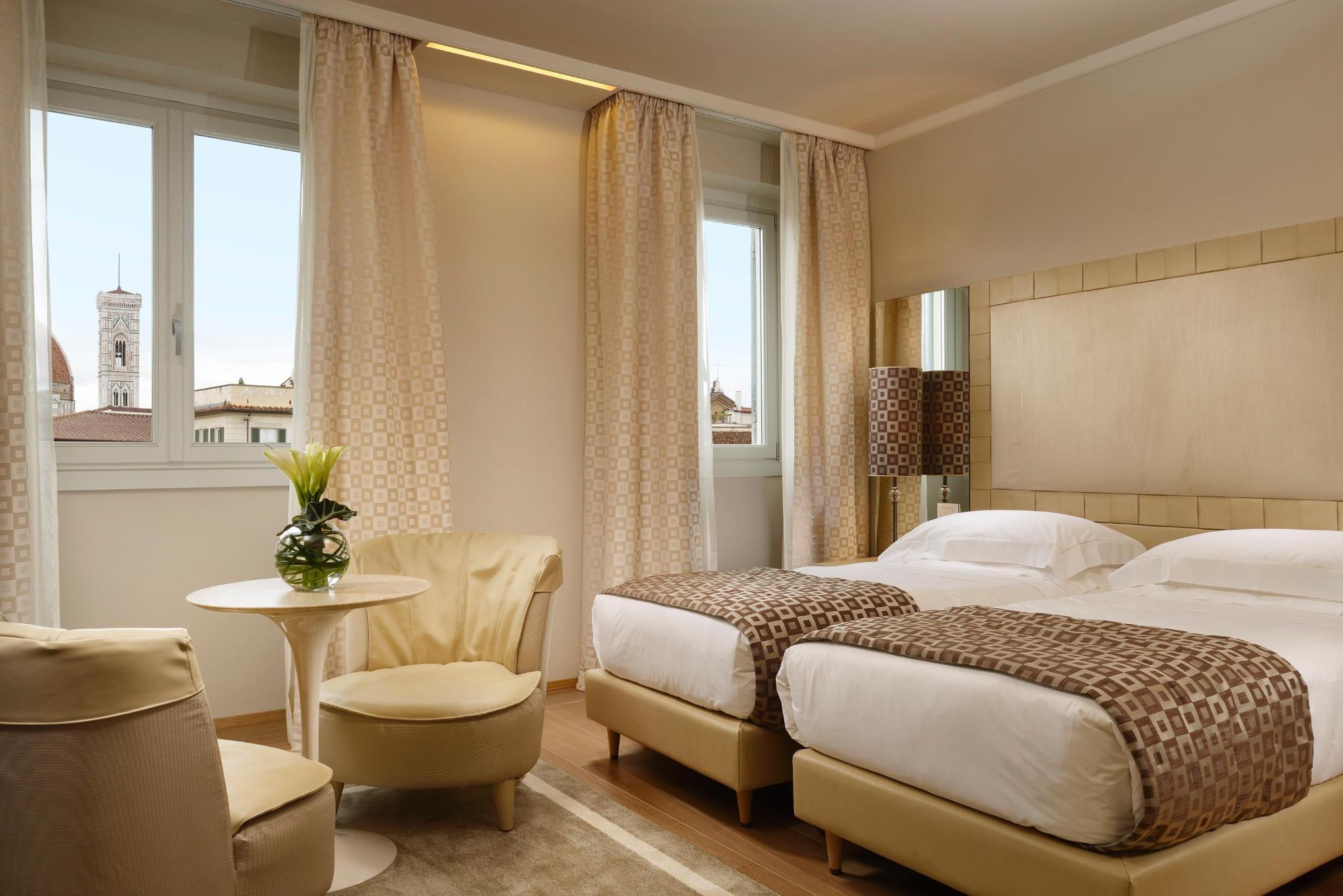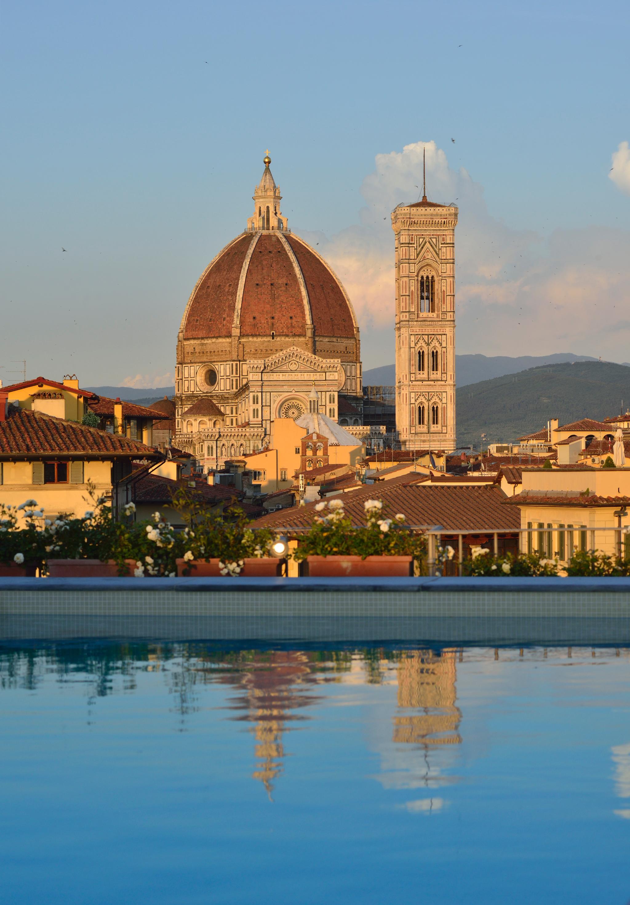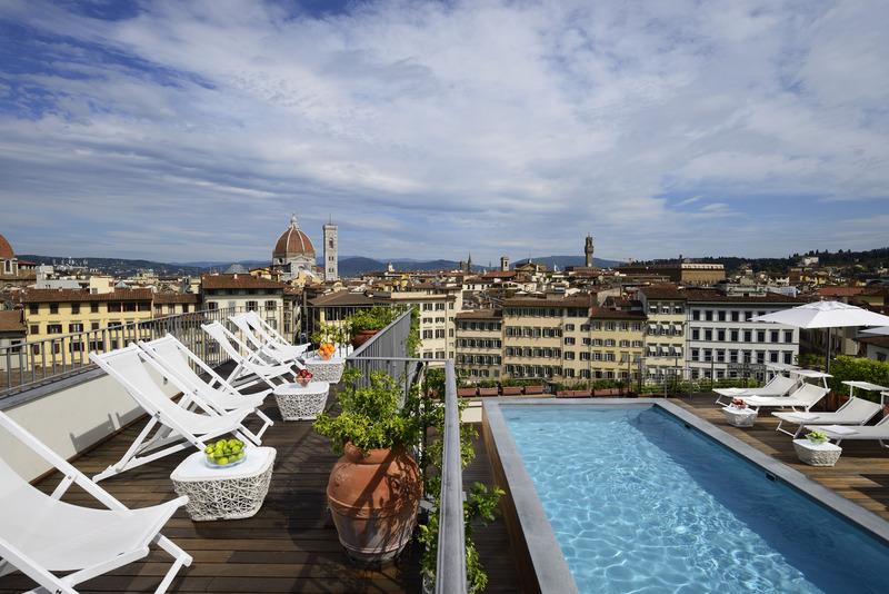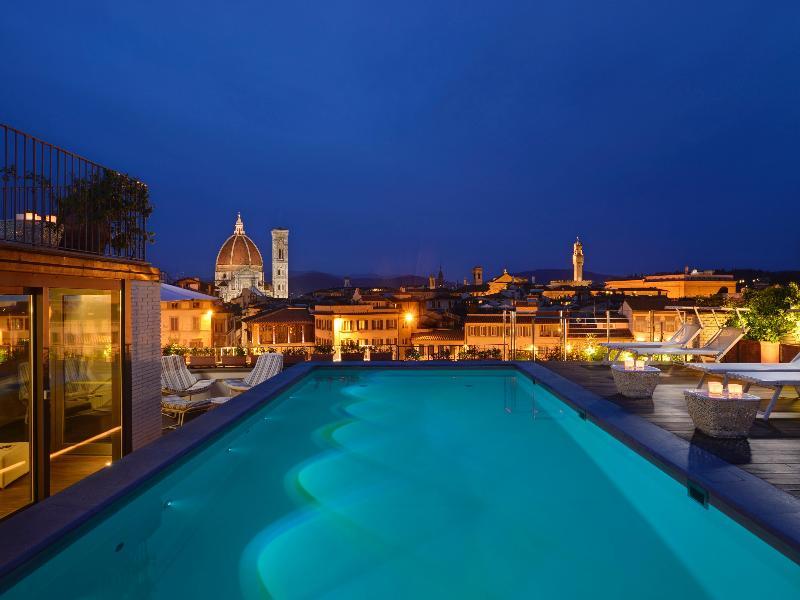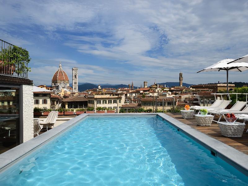 This hotel enjoys a prime setting, lying at the heart of Florence. The hotel is located on Piazza Santa Maria Novella, offering guests the ideal setting from which to explore the rich history and heritage of this captivating city. The hotel is located just a short walking distance away from the Duomo, the Campanile di Giotto and the Uffizi Gallery. Links to the public transport network are to be found nearby. This hotel enjoys a long, rich history, dating back to the beginning of the 15th century. Bathing visitors in culture and history, the hotel has beautifully combined contemporary influences with elements of a bygone era. The hotel features beautifully-appointed guest rooms, which exude classical beauty and refined elegance. The hotel boasts the only rooftop pool in the historical centre of Florence, heated and open from April to October.