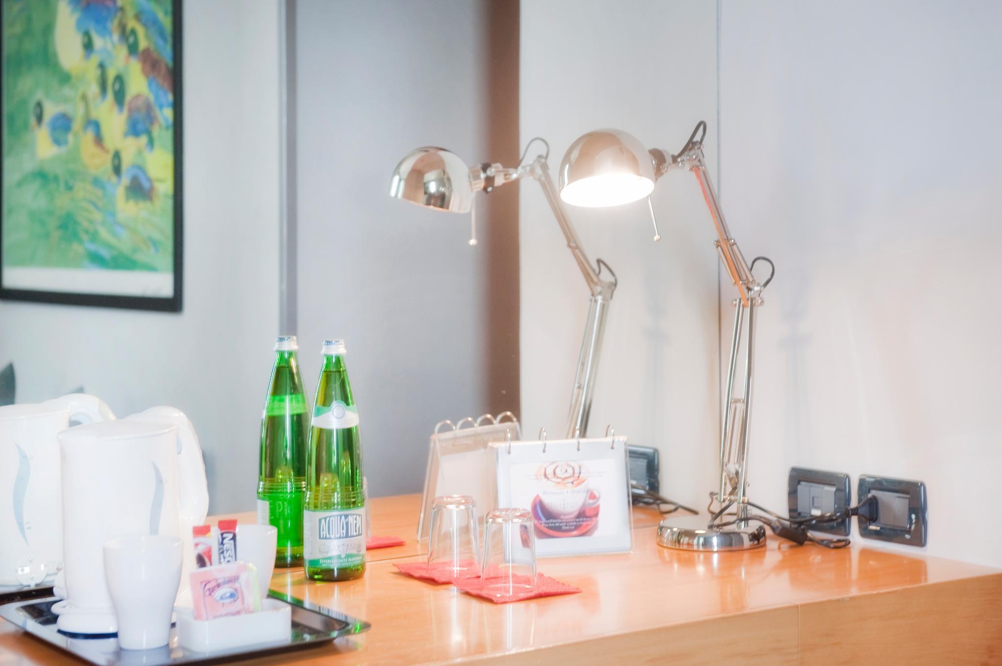 The very luminous rooms are furnished with wooden furniture and offer private bath, air-conditioning, satellite TV, minibar, direct dial telephone, WI-FI connection and a safety box.
