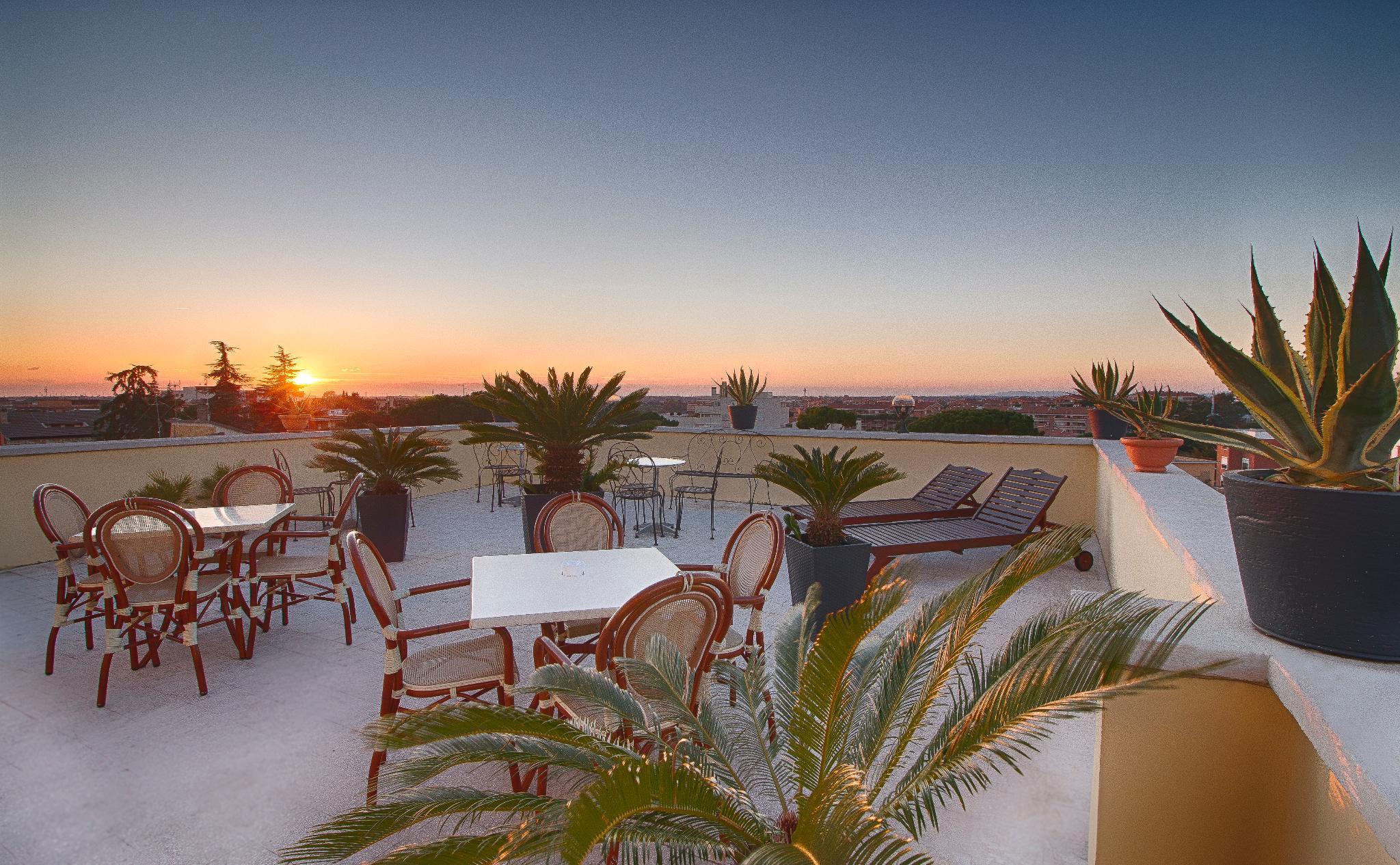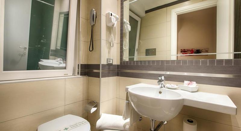 This city hotel is located close to the Vatican City. The city centre is around 3 kms away. Fiumicino Airport is around 20 kms from the hotel, Ciampino Airport can be reached within 30 km and the nearest train station is roughly 2 km from the hotel. In addition, public transport, bars and restaurants are within 400 m from the hotel. The hotel comprises a total of 45 rooms. Wireless Internet in all rooms and a public area is available free of charge. Tour reservations, an airport shuttle service, babysitting, currency exchange and laundry service are offered. Guests can enjoy a cozy bar on the ground floor and the sun terrace an the 5th floor, a free parking place is available. The rooms have a private bathroom and are fitted with all necessities such as hairdryer . Air-conditioning and heating are individually regulated all rooms are equipped with soundproofed windows and flat Tv. Double comfort and Family rooms are provided with memory foam pillows and 1 free bottle of water upon arrival in the room or from the bar and Comfort rooms rate includes free late check-out at 12.00 pm.