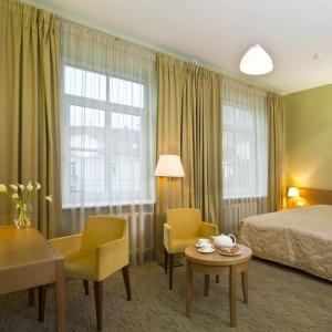 Hotel guests can relax in the sauna or take a swim in its swimming pool. There also is a beauty centre on site where guests can enjoy various treatments: hairdressing service, manicure, pedicure, depilation, make-up, massage, peeling, face skin treatments. Other hotel services include: rooms service, laundry/dry-cleaning, newsstand, souvenir shop, shuttle service.
