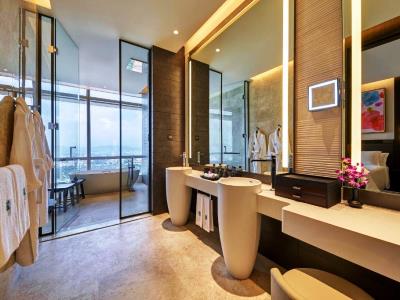 This 5 star hotel is located within the city of Kuala Lumpur and was established in 2018. It is close to the Pavilion Kuala Lumpur and the nearest station is Bukit Bintang. The Hotel has a coffee shop, an outdoor swimming pool and a fitness centre/gym. All 55 rooms are equipped with minibar, hairdryer, safe, ironing set and air conditioning.