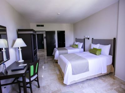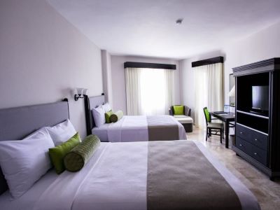 This 5 star hotel is located on the coastline of Cancun. It is a short drive away from the Museum De Art Popular Mexico. The Hotel has a coffee shop and an outdoor swimming pool. All 342 rooms are equipped with hairdryer and safe.