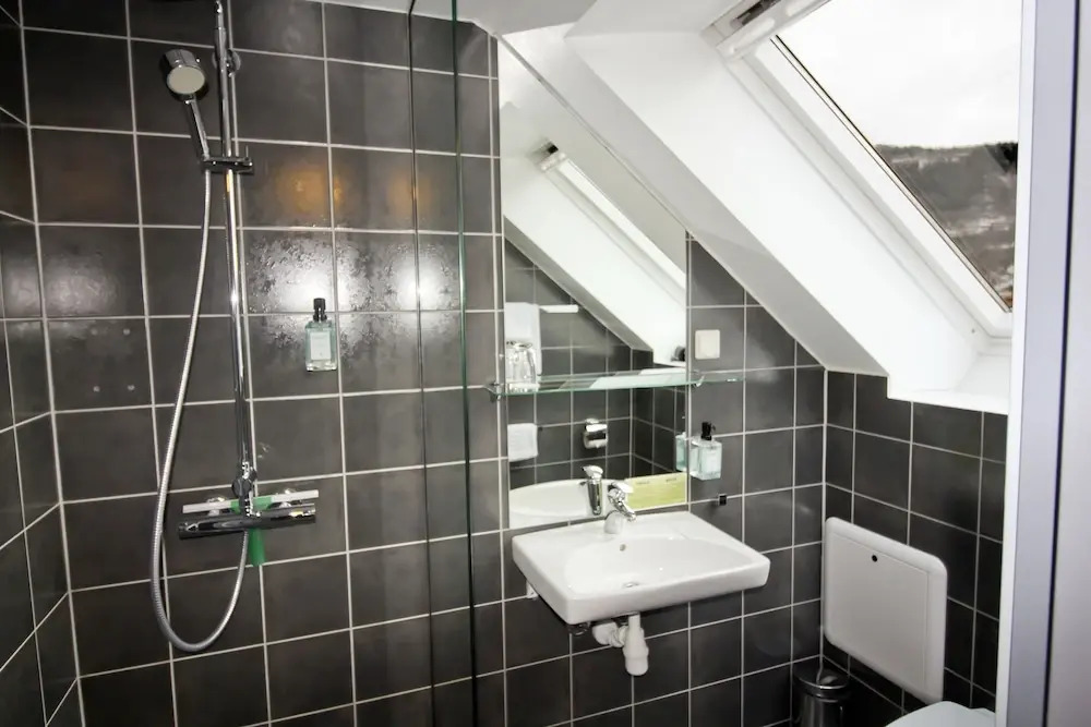 In the room, there is a shower and a TV. The room equipment depends on its category.