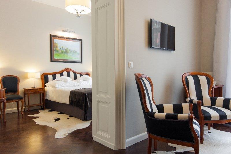 The hotel is located in the famous Royal Route in Krakow, which links the Main Market Square with the Wawel Castle. The lively Kazimierz District, the old Jewish Quarter, is only a quick walk away. The Galeria Kazimierz and Galeria Krakowska shopping centres are also within easy reach. The airport is at 12 km from the hotel. The elegant rooms are classically decorated but equipped with modern amenities to make guests feel like at home. The hotel's restaurant serves a breakfast buffet every morning, and guests can also taste Polish specialties and International cuisine for lunch and dinner. This beautiful hotel is perfect for couples and business guests looking for high-class accommodation in an enviable location. The hotel also has conference rooms and banqueting facilities available for business meetings and special events.