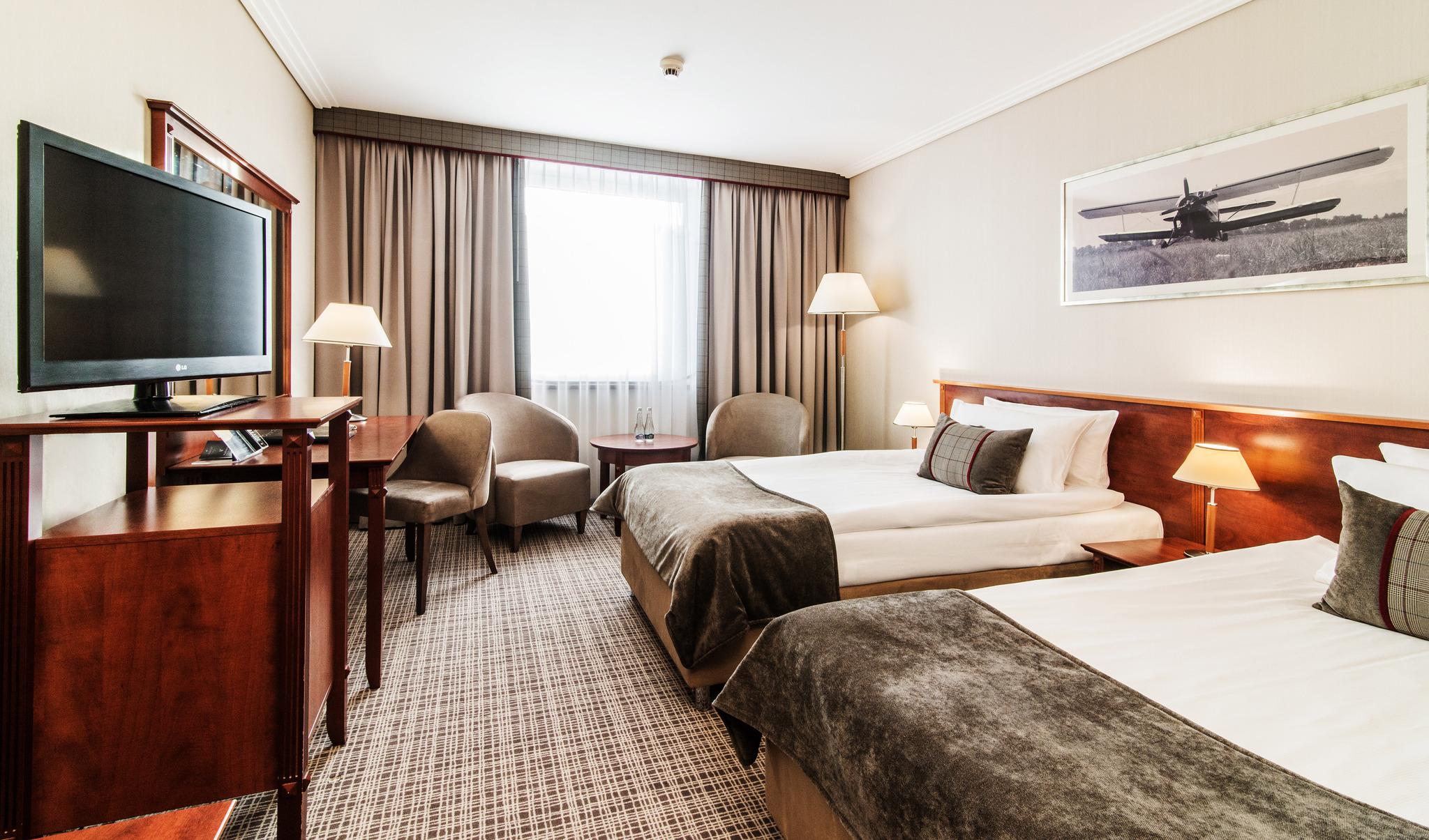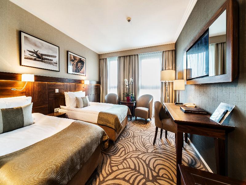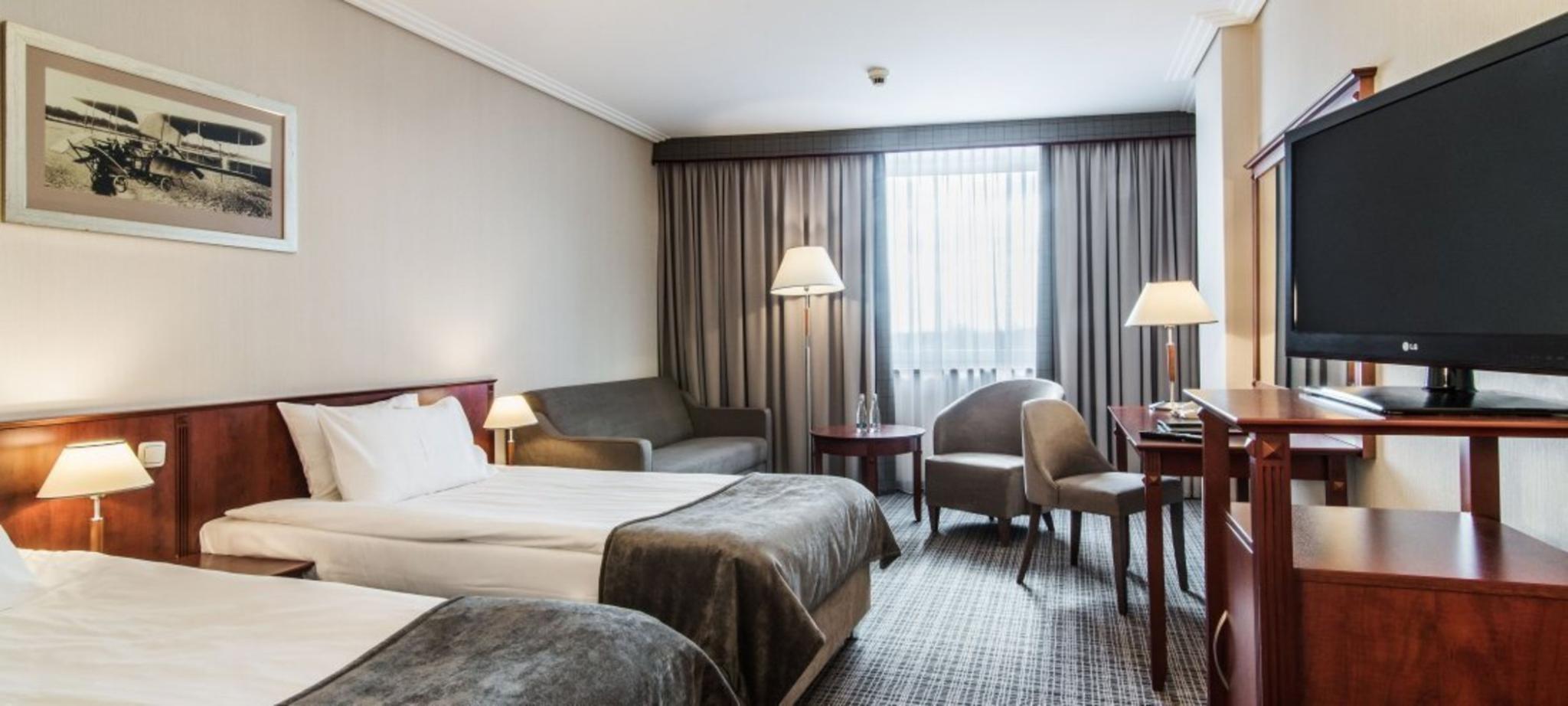 This modern hotel is in the heart of the business district of Warsaw conveniently located near the Chopin Airport with public transportation connecting the property to the centre of Warsaw and long-distance hubs. This is optimum for both business and leisure travellers. The combination of warmth, hospitality and attentive service make this the perfect choice for discerning travellers. A wellness and fitness relaxation area as well as varied dining opportunities, including the stylish restaurant and cafe providing delicious desserts along with premier coffees, complement the hotel's comfortable atmosphere. Guest rooms are spacious and comfortable with elegant and modern interior design with reference to the tradition of aviation. All rooms come equipped with the essential features to make your stay a home away from home. Rooms come with complimentary Wi-Fi, bathroom with tub and heated floors, air conditioning and minibar. The hotel has business space including several conference halls make it perfect for events and gatherings of all kinds.