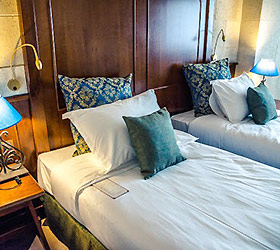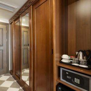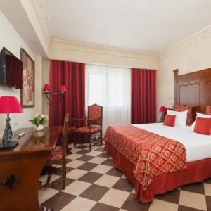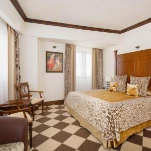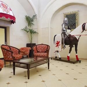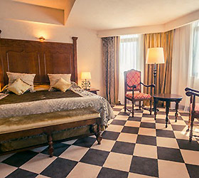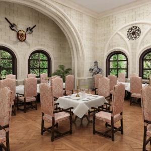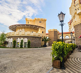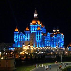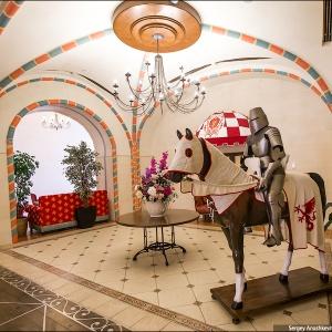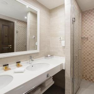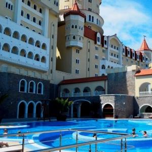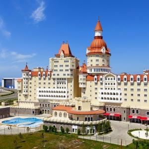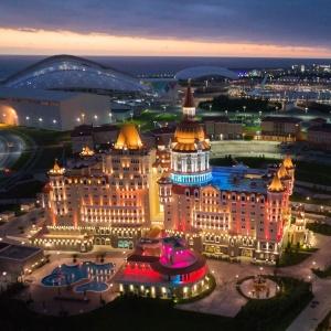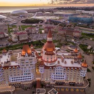 The "Bogatyr" Hotel is set within the Sochi Theme Park territory. Accommodation is available in Standard rooms, in Superior comfort rooms, and in Junior Suites. Each room includes: large double-bed or two separate beds, bunk bed or sofa, bedside tables, desk with folding mirror and pullout shelves, tea table, built-in wardrobe with mirror, personal safe box, baggage stand, shower cabin, hair-dryer, toiletries, mirror, TV with satellite channels, Wi-Fi Internet access, staff call button, mini bar, and telephone.