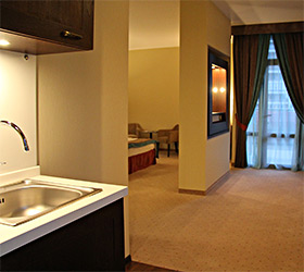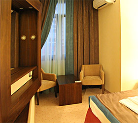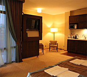 Guests of the Forward guest house are welcome to choose from rooms of various categories. All guestrooms are equipped with balcony, air conditioning, safety box, mini-bar, high-speed Internet access, LED-TV with satellite channels, telephone, mini-kitchen with a microwave oven, fridge, coffee machine, kettle, glassware and cutlery. In each bathroom: bath or shower cabin, bathrobe, bidet and hairdryer. Hypoallergic linen, slippers and bottled water are available on request. Daily housekeeping is included.