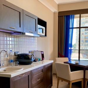 Guest services are high-speed Internet access in public areas, concierge services, tickets booking, visa support, gym, registration for foreign citizens, 24-hour transfer from/to the airport, parking.