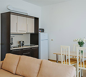 The Apartment Hotel offers indoor and outdoor pools, gym, sauna, spa, restaurant, bar, Lounge & Grill, modern and multifunctional conference hall. Animation and kids' club (without parents' presence - for children older than 4 years) are also at the guests' services.