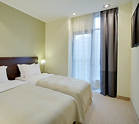 The Adler hotel offers 200 comfortable rooms, each with a private balcony, plasma satellite TV, a comfortable work desks with chairs, high-speed Internet access (Wi-Fi), mini-bar, electronic safe, tea sets. The bathrooms are equipped with toiletries, bathrobes and slippers. There are rooms for people with disabilities.