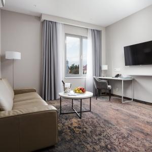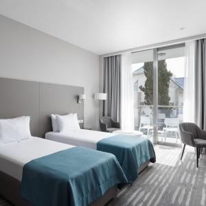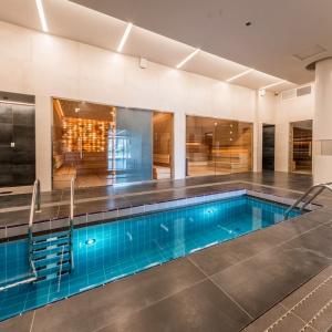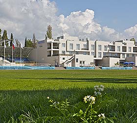 Sports complex with a total area of 3 500 sq m, including: outdoor pool 25 meters; 2 children's heated swimming pools; hot tub; thermal complex, including 5 types of saunas; fitness room 320 sq. m.; group exercise room 65 sq. m.
