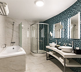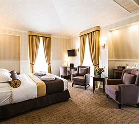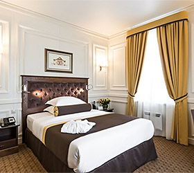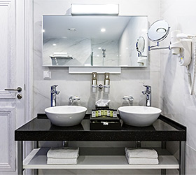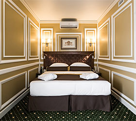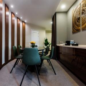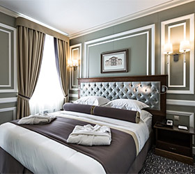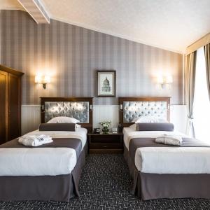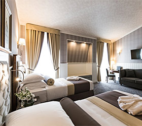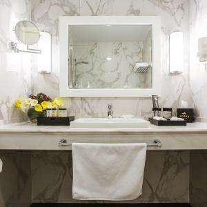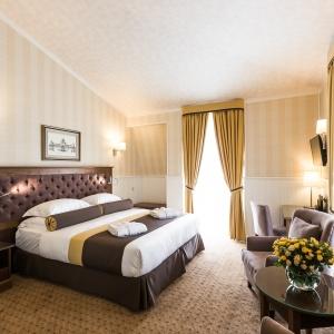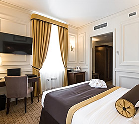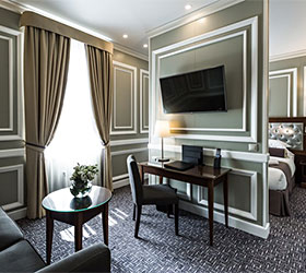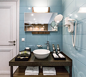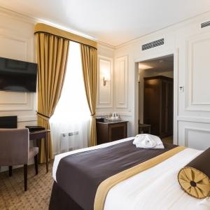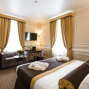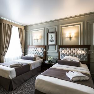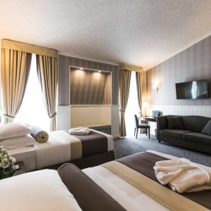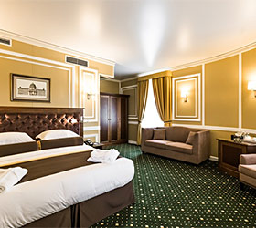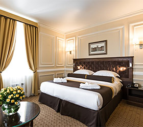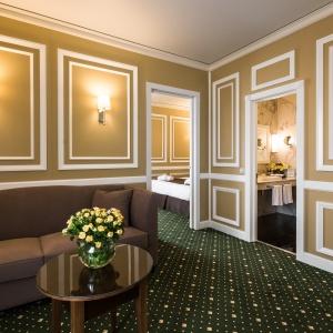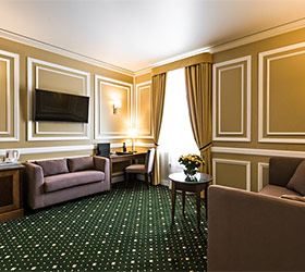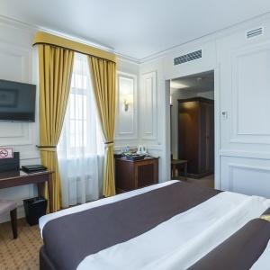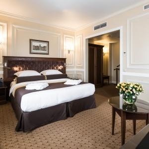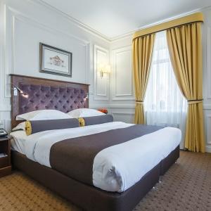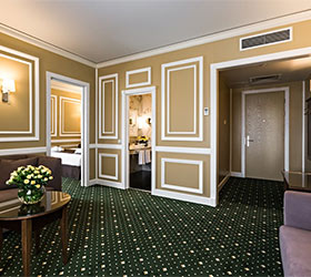 Hotel rooms are designed in a modern European style with classical wall panels of different colors and types. Amenities include: tea and coffee making facilities, blackout curtains providing a good and deep sleep, a wide selection of toiletries, bathrobe and slippers, a mini bar and safe.