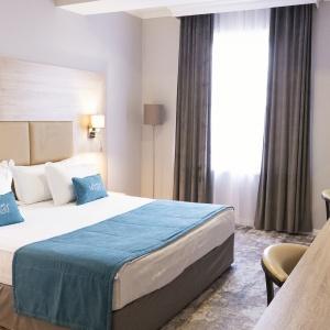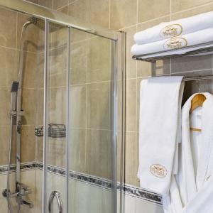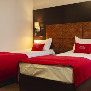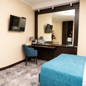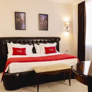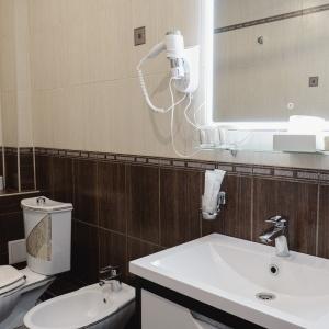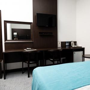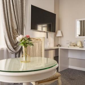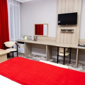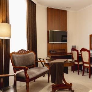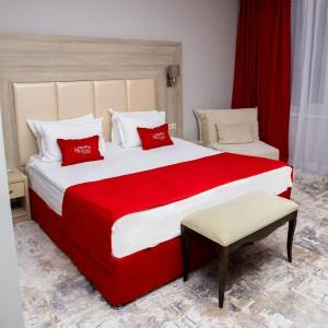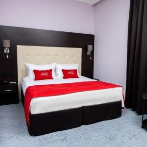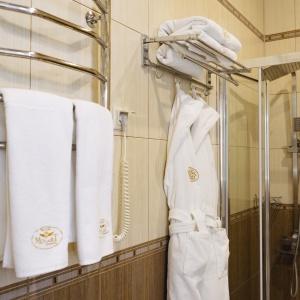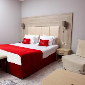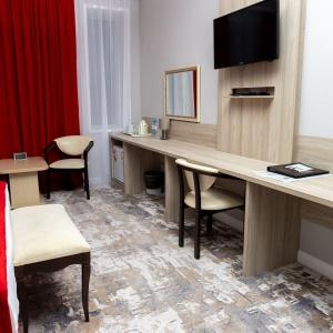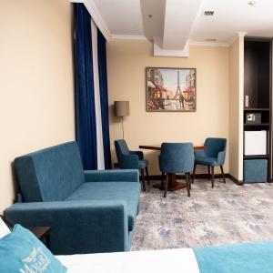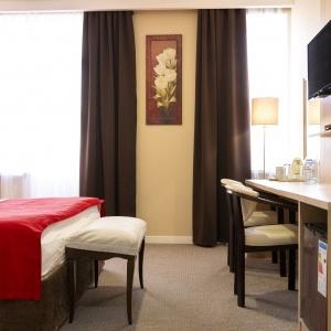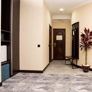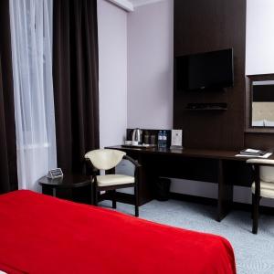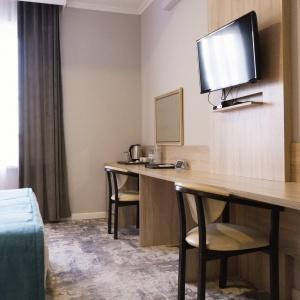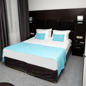 Accommodation is provided in rooms of various categories - Standard, Studio, Suite and Apartment Suite. Guests can choose among smoking and non-smoking rooms. A standard room includes - orthopaedic double bed with hypoallergenic linen, two bedside tables, desk with sufficient lighting, coffee table, shoe rack and wardrobe, mini bar, wall LCD-screen TV, safe box, adjustable air conditioning, carpet, tableware, iron and ironing board. The bathroom has shower cubicle, make-up mirror, hairdryer, toiletries, terry robe and slippers, set of towels. All hotel rooms have Wi-Fi Internet coverage.