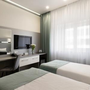 The hotel offers 32 rooms of various categories. In each room: air conditioning, electronic key card, telephone, Wi-Fi, desk and flat-screen TV, refrigerator, wardrobe, iron. Each room has a private bathroom with shower, hairdryer, bathrobes, slippers, set of towels and toiletries.