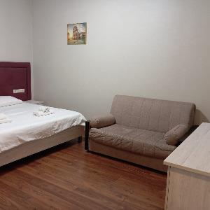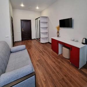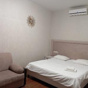 It offers 19 rooms of the following categories: Standard, Comfort, Junior Suite, Suite. The interior is decorated in light shades, all rooms have modern and functional furniture. The facilities include air conditioning, LCD TV, hairdryer, and a private bathroom equipped with personal hygiene products.
