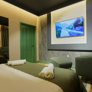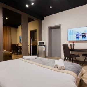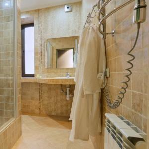 Each room is equipped with comfortable sleeping places, a modern smart TV, a fridge, air conditioning, a wardrobe, an electric kettle, and an individual wi-fi router for comfortable Internet access. The bathroom with a shower is equipped with a hair dryer, a set of toiletries, bathrobes and slippers, and in some rooms an exquisite addition has been added - a hot marble stove that turns the bathroom into a mini hammam for complete relaxation.