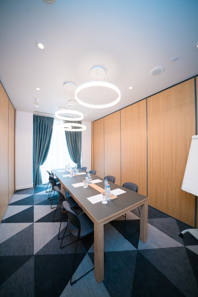The hotel offers three conference rooms - two halls with an area of 20 sq.m. and one area of 120 sq.m. All rooms are equipped with modern technology and daylight to ensure comfort and convenience for all our guests.