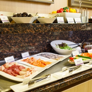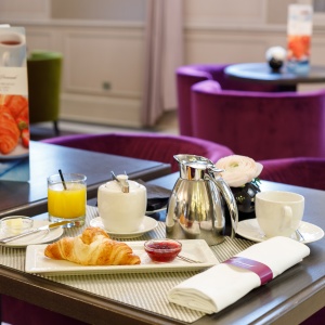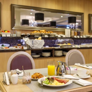 Restaurant and Bar La Promenade is located in a historic building of the early 19th century, a stone's throw from the Smolenskaya metro station on the Garden Ring and occupies the first floor of the modern Mercure Arbat Moscow hotel. The French classic interior with elements of art deco and the relaxed atmosphere of a boutique hotel make this place the most attractive for business meetings, warm meetings with friends and relatives, and small-scale celebrations. La Promenade: The Bar Food Experience is open 24 hours, 7 days a week. The La Promenade bar menu offers guests not only the usual range of drinks and snacks for the bar menu, but also a full menu with author's dishes and a wine list. Every day, from morning until noon, the bar is open for à la carte breakfasts.