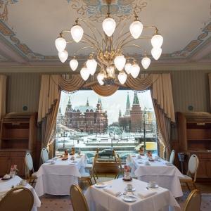 The breakfast is served at elegant and spacious Moskovsky hall with large panoramic windows allowing in full natural daylight and offering a magnificent view over Red Square and Moscow Kremlin.