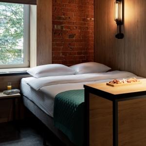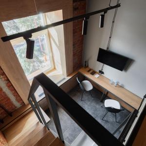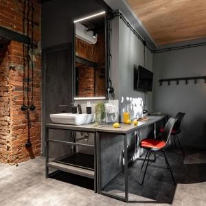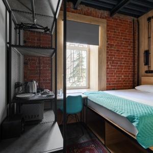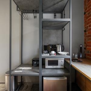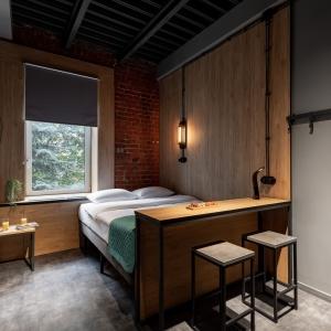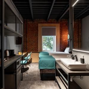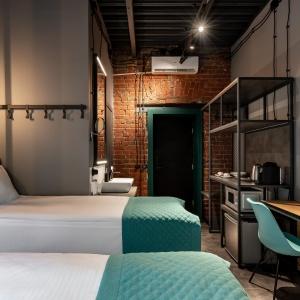 82 rooms with a discreet design in the loft style, wood-brick accents harmoniously complement the wall art of the heroes of ancient times, and spot lighting will allow guests to relax after a busy day in the big city. These are multifunctional design rooms with convenient zoning and a kitchen area with the necessary equipment. Each room has a kitchen area with a microwave, kettle, coffee maker, set of dishes, as well as fast Wi-Fi for productive work and satellite TV.