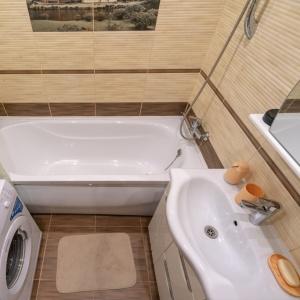 With us, your stay will be unforgettable due to the fact that the apartment has: high-quality snow-white linen. Double bed with an orthopedic mattress, double sofa. Fully equipped kitchen for the convenience of guests: hob, microwave, refrigerator, dishes, cutlery and kitchen utensils. Terry towels, hair dryer, iron, ironing board, washing machine and dryer - everything for a comfortable stay. High-speed Wi-Fi, TV, cable / digital TV.