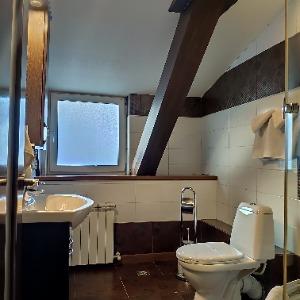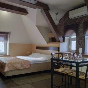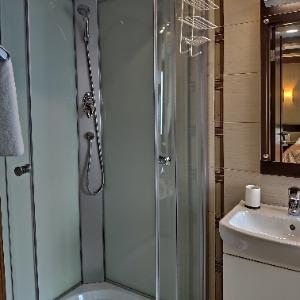 The hotel building accommodates rooms of various categories. A Standard room includes - ante-room with wardrobe, comfortable orthopaedic bed, air conditioning, electronic safe box, mini bar, telephone, LCD TV, and wireless Internet access. The bathroom has hydromassage shower cubicle, hair-dryer, slippers, set of towels and toiletries.