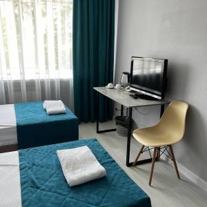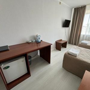 "Pallada Hotel" offers comfortable accommodation not far from Novokuznetsk city centre. There are 55 rooms of Standard, Standard Family, Junior Suite, Suite and De Luxe categories. The in-room amenities include - electric kettle, tableware, fridge, telephone, cable TV, fire alarm system. Some rooms are air conditioned and additionally include a safe box, bathrobes and slippers.