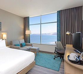 Hotel offers 130 rooms of different type including 2 rooms for disabled persons. Every room is equipped with all the necessary to make a business-trip or stay for leisure in Novorossiysk comfortable: Suite Dreams by Serta bed, desk with ergonomic chair, safe, HDTV, mini-fridge, tea and coffee facilities, iron desk with iron, bathroom with shower or bathtube, hairdryer and slippers. Complimentary Wi-Fi is provided both in rooms and in public areas of Hotel.