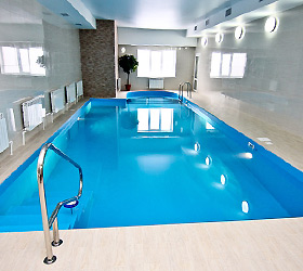 It offers a bath complex with a pool and a gym.