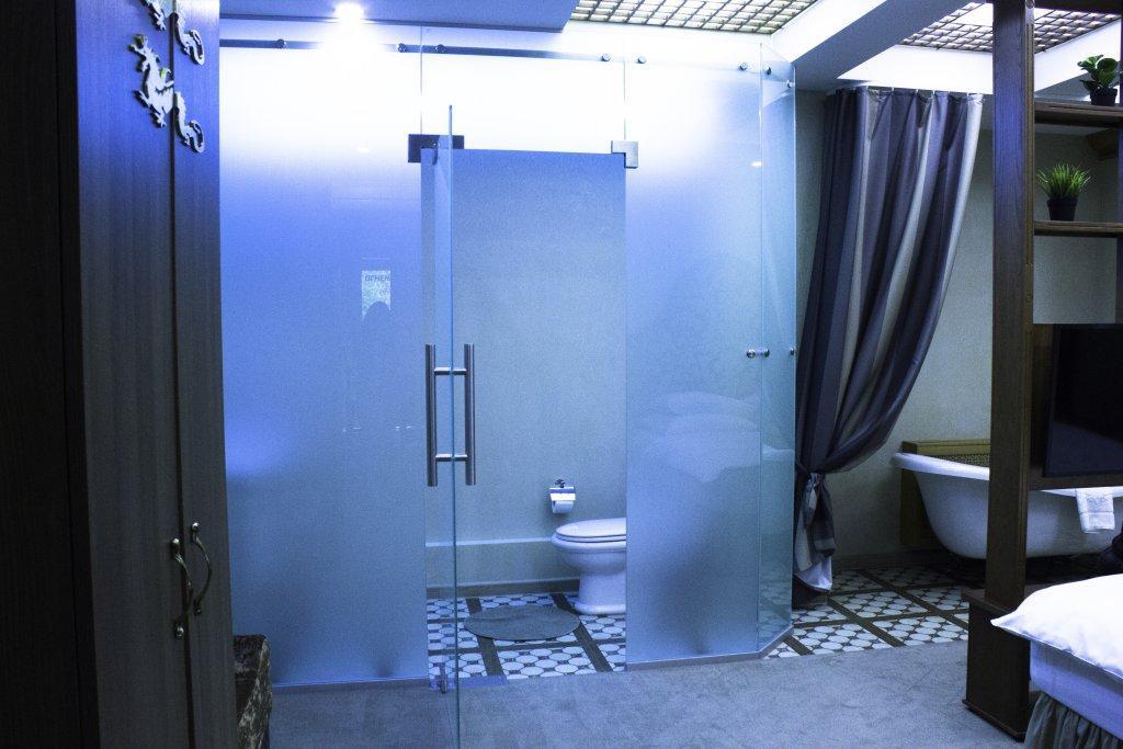 В номерах категории Комфорт есть только маленькое окно которое находится в душевой и выходит на стену.