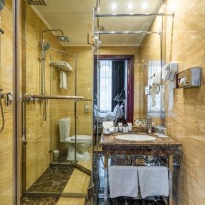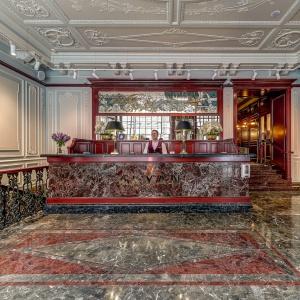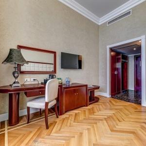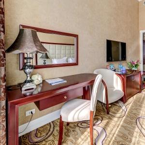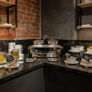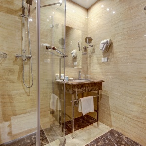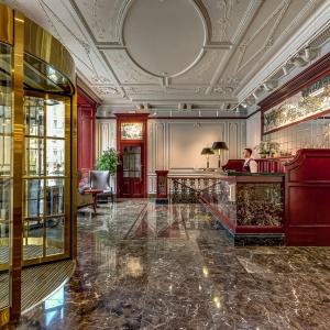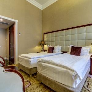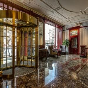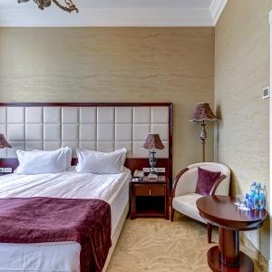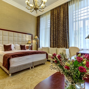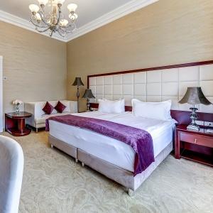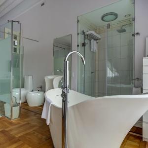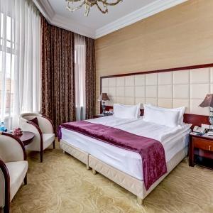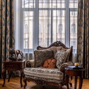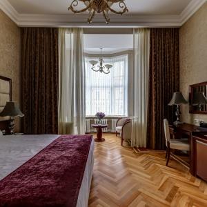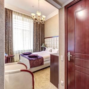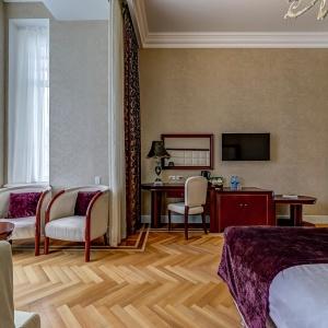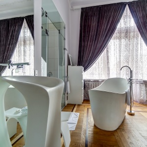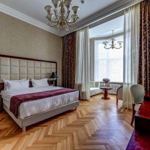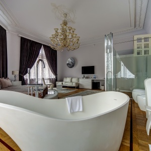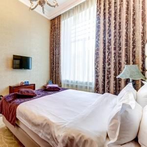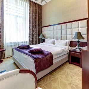 The rooms are decorated in a classic style with light colors, and some of them feature restored antique fireplaces, stoves, stucco molding, and bas-reliefs. In the hotel atrium, there is a charming Italian restaurant, MIA Strada, where breakfast is served in a buffet format each morning. Additionally, there is an exclusive bar Serge, where guests can enjoy signature cocktails and Mediterranean snacks.