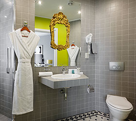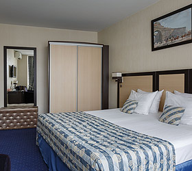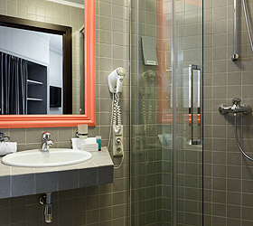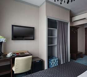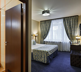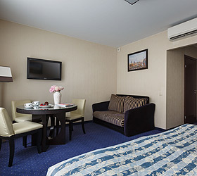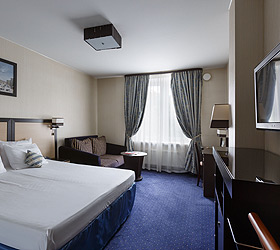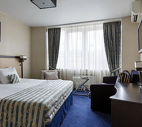 All hotel rooms are equipped with double-glazed windows with increased noise absorption, air conditioning, telephone, flat-screen TV, internal ventilation system, hairdryer, refrigerator, standard-size beds with comfortable orthopedic mattresses, work desk. All rooms have pleasant and comfortable carpets. Bathrooms are equipped with shower cabins and all necessary accessories.