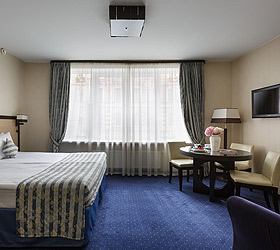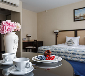 38 rooms are located on the 2nd floor of a 4-storey building. The hotel has everything to make guests feel comfortable and cozy. The hotel has single rooms, which are perfect for those who travel alone, or come to St. Petersburg on a business trip. In standard double rooms you can stay with family or friends. The hotel also offers superior rooms - for those who prefer special comfort. Along with these rooms, there are suites, for example, for newlyweds or married couples who need peace of mind and privacy, as well as for those who came to St. Petersburg on business.