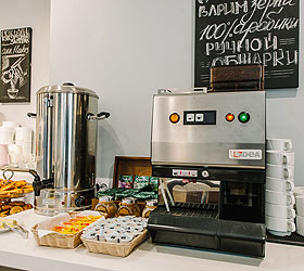 In the morning, a buffet breakfast is served in the café.