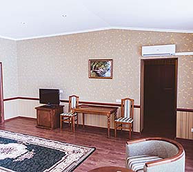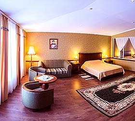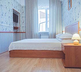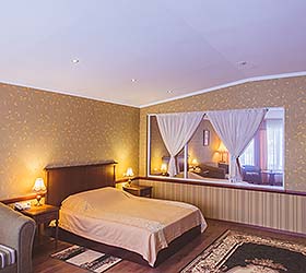 Accommodation is available in 36 rooms of various categories, overlooking the city or the park. All rooms are fitted with large orthopedic beds with hypo-allergic bedclothes, comfortable cabinet-type furniture, armchairs and mirrors, spacious bathrooms, telephones, satellite TV, Wi-Fi Internet access, fridges and mini bars, kettles, and tableware. Hotel bathrooms are equipped with state-of-the-art German fitment and large mirrors. Suites and VIP Suites offer hair-dryers, robes and slippers.