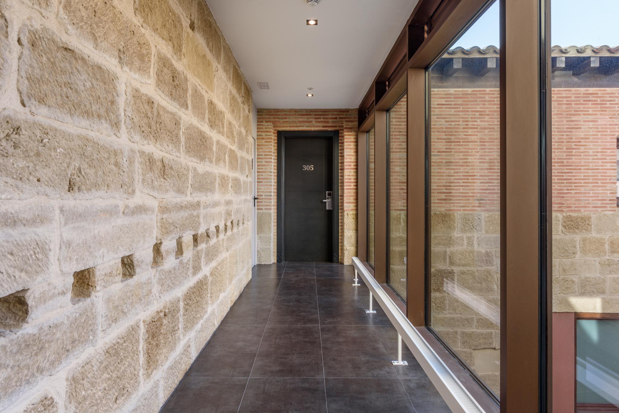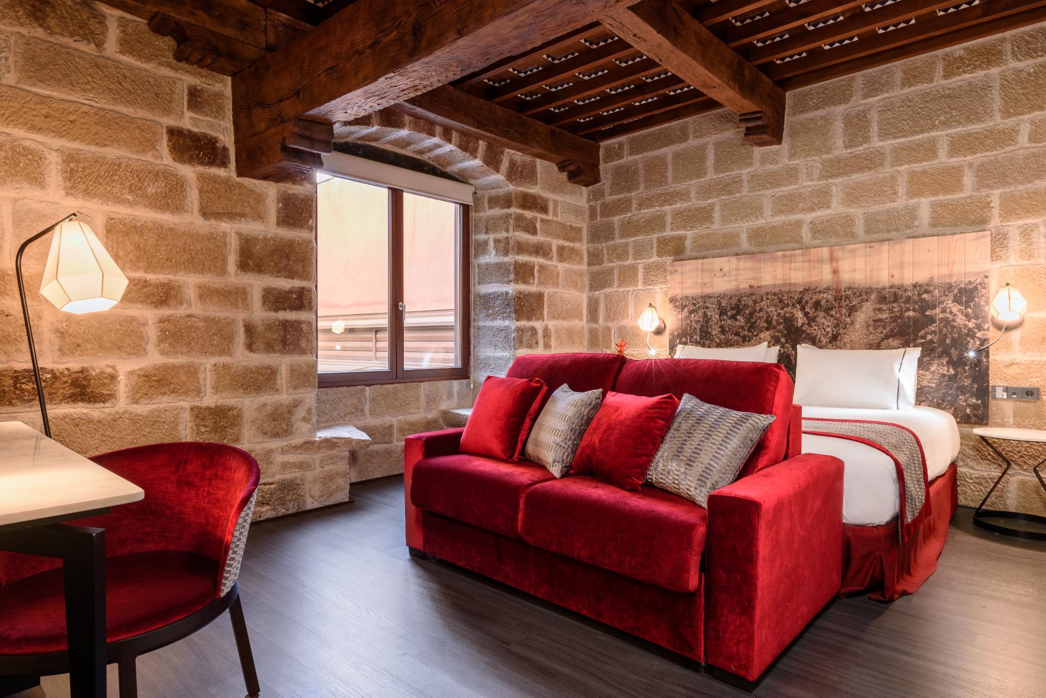 Wandering along Ruavieja in the Logrono old town is like going back in time and taking in the history of its buildings and cobblestone streets. At Eurostars Fuerte Ruavieja 4*, you can enjoy the essence of a classical building with functional, up-to-date interior design that maintains all the beauty and architectural elements of the original building. When you walk through the wooden front door, which still maintains the original round arch, you'll discover the structural elements that have been preserved inside, including stone walls and wooden beams that give the spaces at Eurostars Fuerte Ruavieja 4* a character all their own. In addition to the charm of this type of building, the hotel also features the best facilities, including a sauna, Turkish baths, gym and bar/cafe. Plus, its 30 rooms each have great services such as a minibar, LCD TV, safe box and welcome amenities for a wonderfully unique stay.